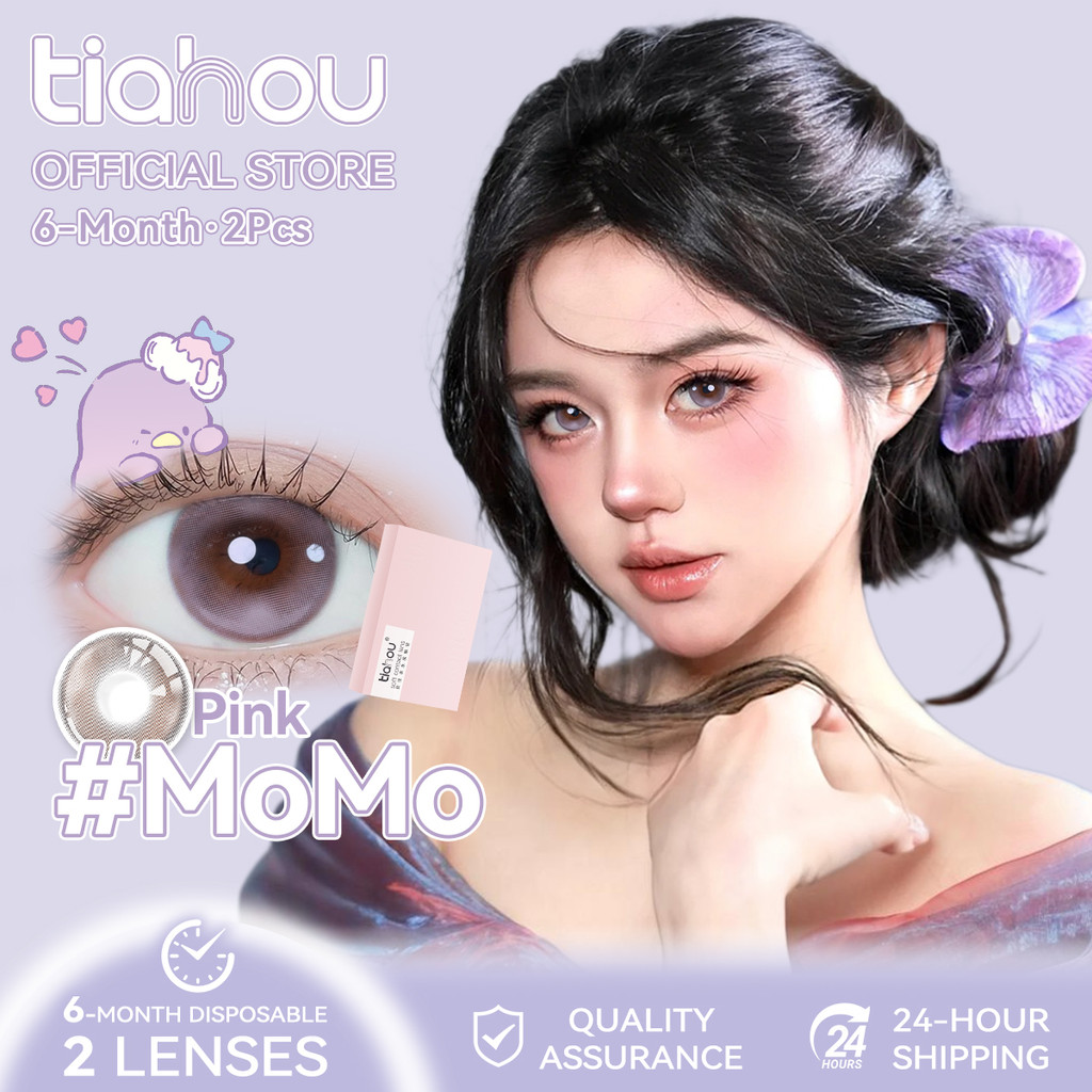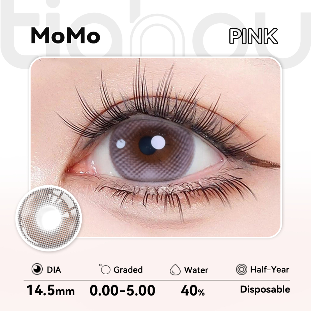 Tianhou MOMO Peach Pink Contact Lens 1Pair 6M 14.5mm -5.00~0 Gift Solution Kit