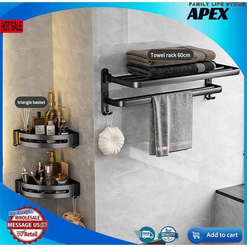 【APEX】Towel Rack Bathroom Organizer Towel Holder Bathroom Rack Toilet Rack Wall Mounting