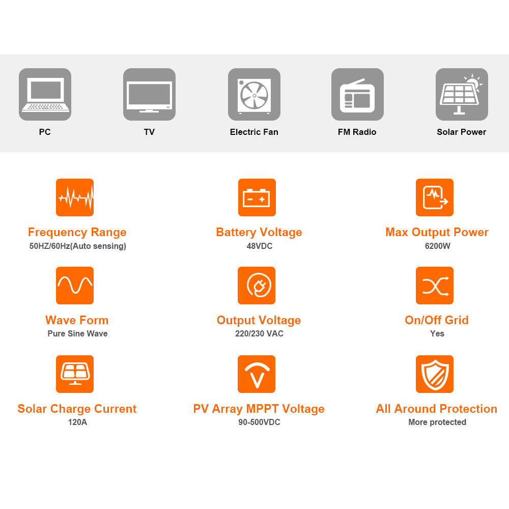 PowMr MPPT 4.2KW Hybrid Solar Inverter Built-in 120A Solar Charger Controller Max PV Input 500Voc 2