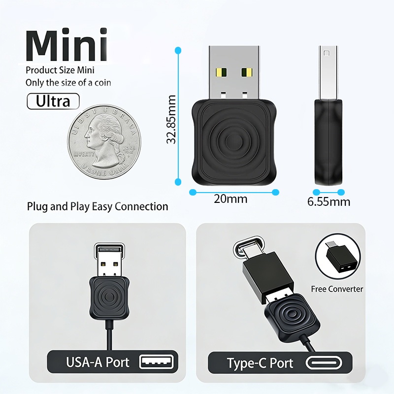 CarlinKit Mini Ultra Wireless Carplay Adapter – Wireless Carplay and Android Auto Support COD