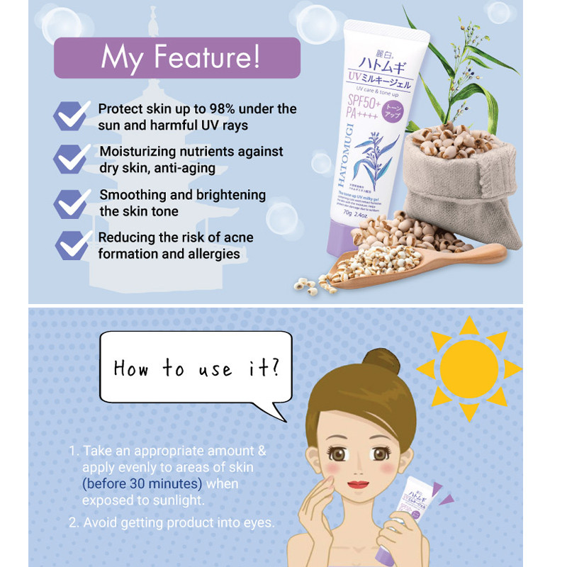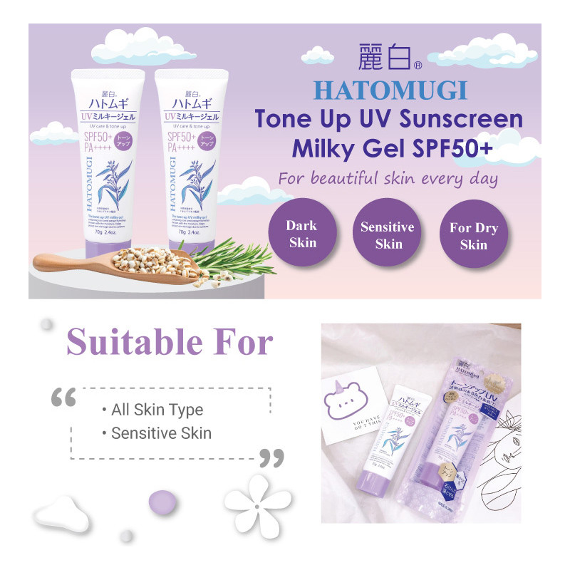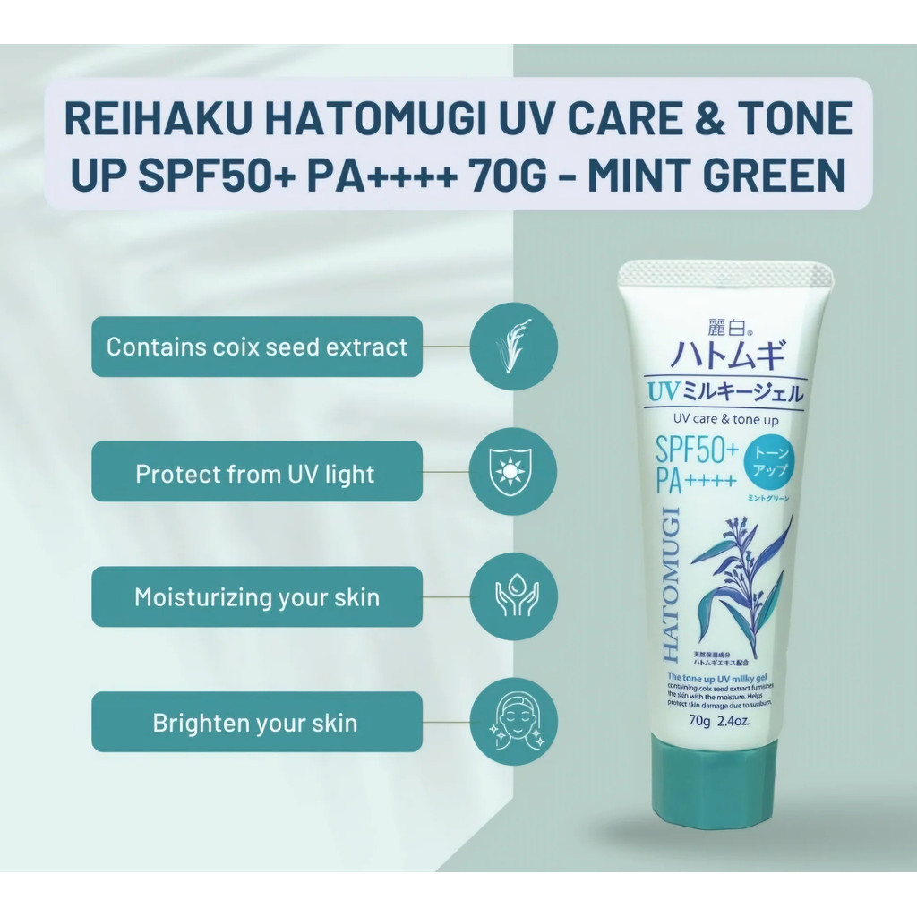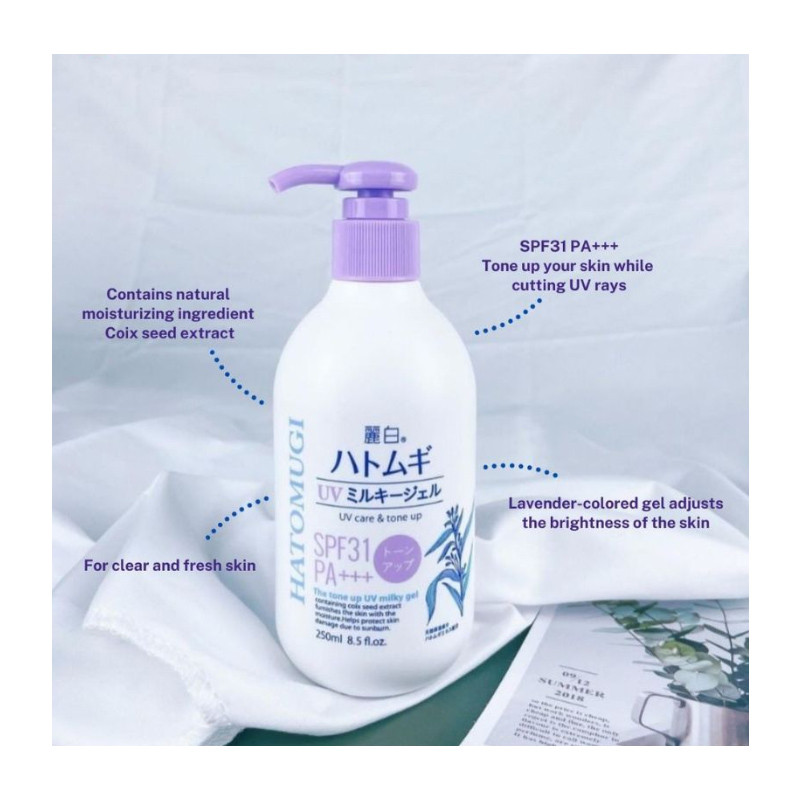 Reihaku Hatomugi Tone-Up UV Milky Gel SPF50+ PA++++ Tube (70g) SPF50+ (70g) SPF31+ Pump (250ml) Direct From Japan