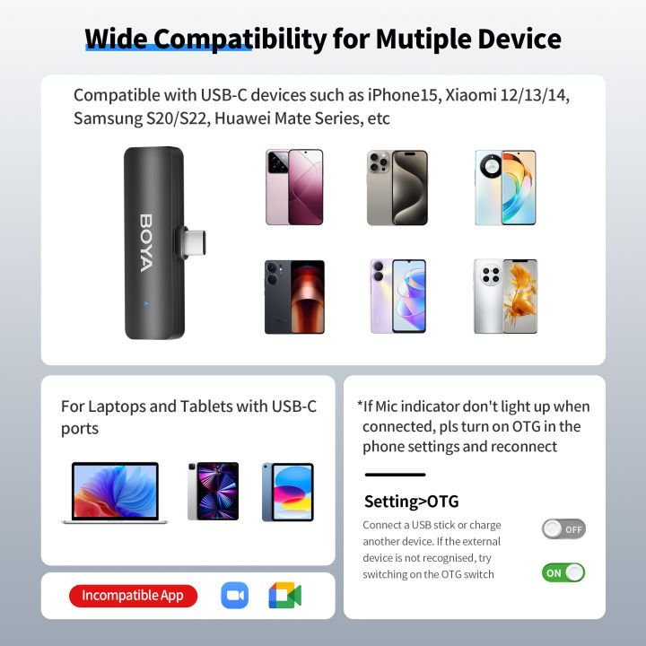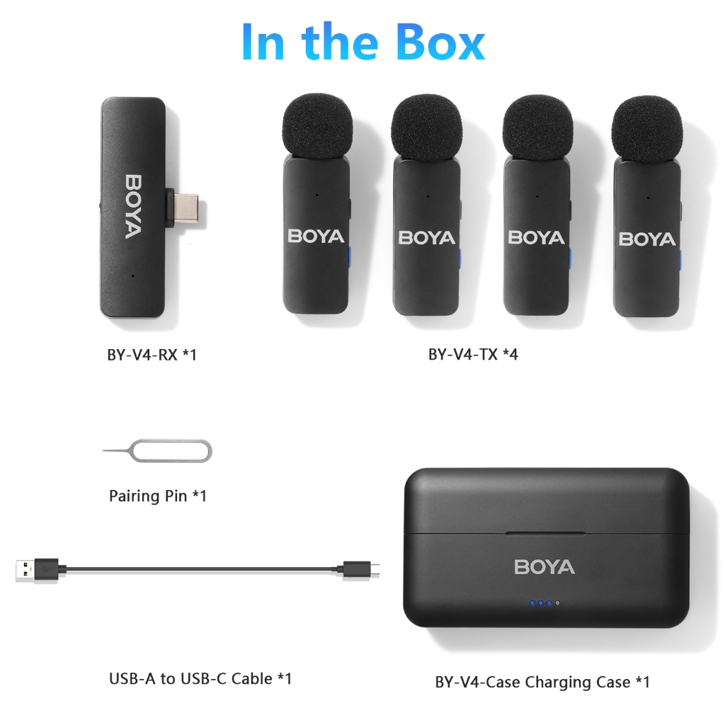 BOYA BY-V4U Wireless Lavalier Microphone for iPhone15/16 Android PC Video Recording Vlog Live