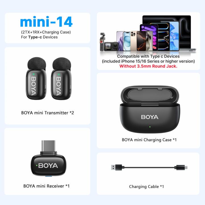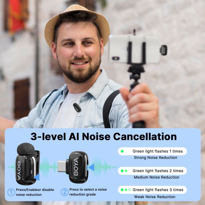 BOYA mini Wireless Lavalier Microphone for iPhone/Android/PC AI Voice Changer for Video Recording