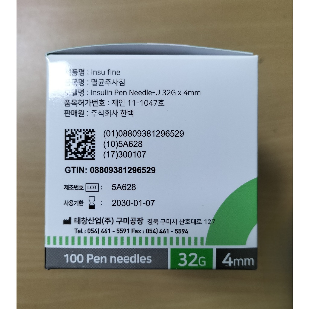 Insulin Pen Needles 32G (0.23) X 4mm, 100 needles, Insufine Korean brand, fast delivery from Shopee