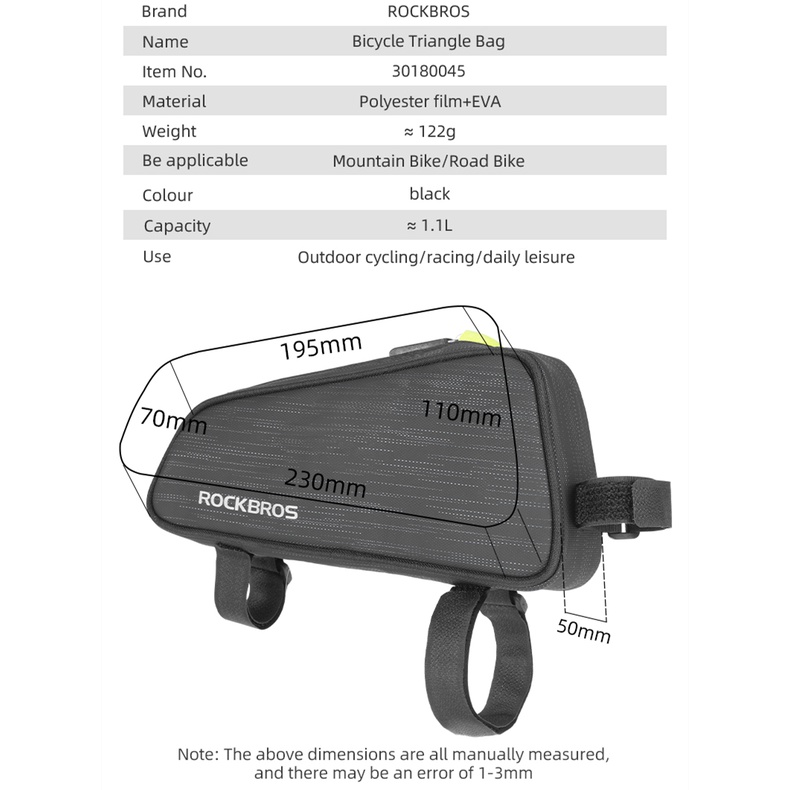 ROCKBROS Portable Triangle Bag Waterproof Mountain Bike Frame Reflective Top Tube Accessories