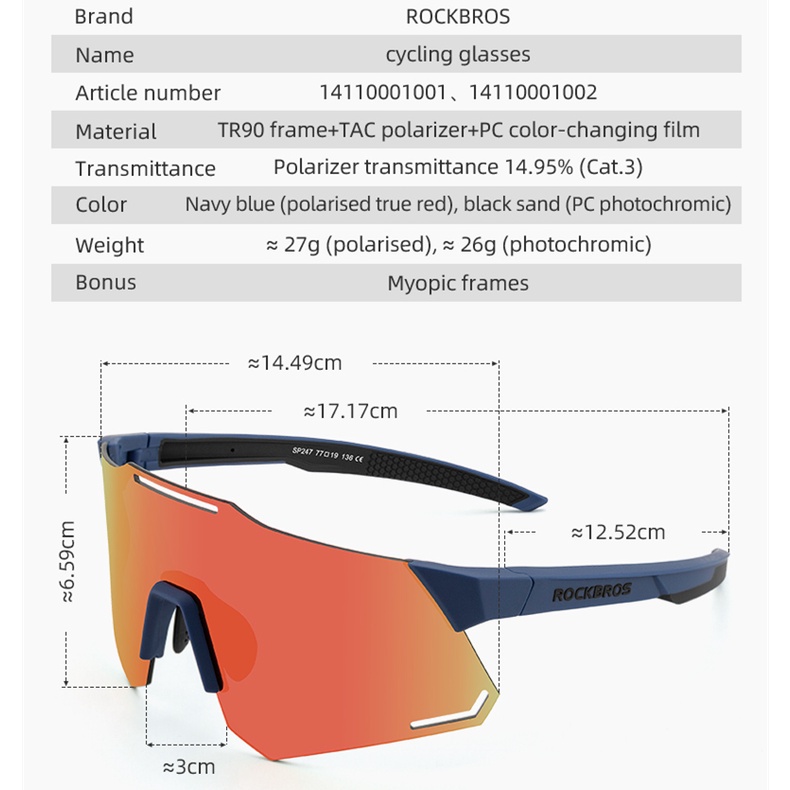 ROCKBROS Bike Glasses Polarized Photochromic Goggles Bicycle Sunglasses Outdoor Sports Eyewear Accessories