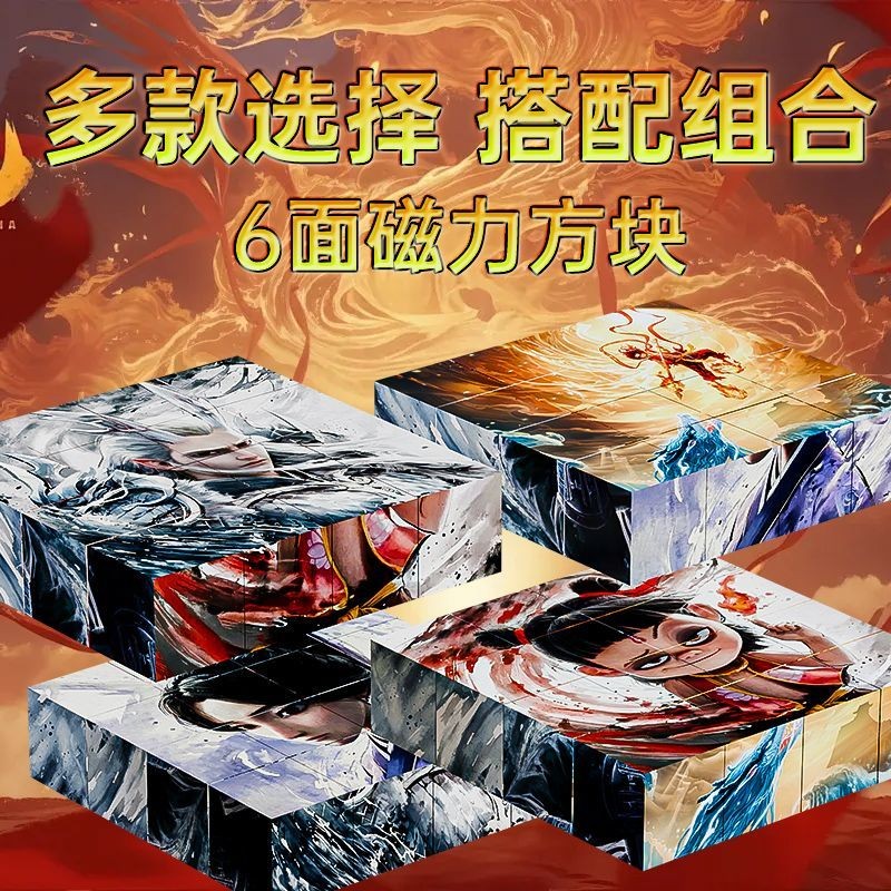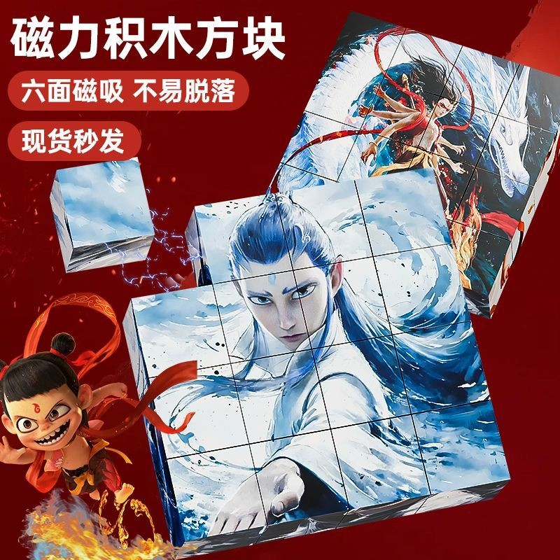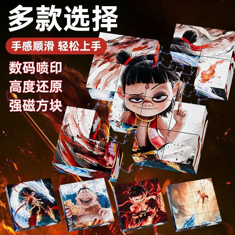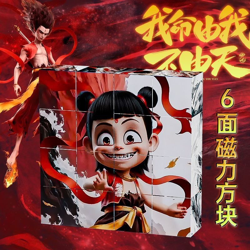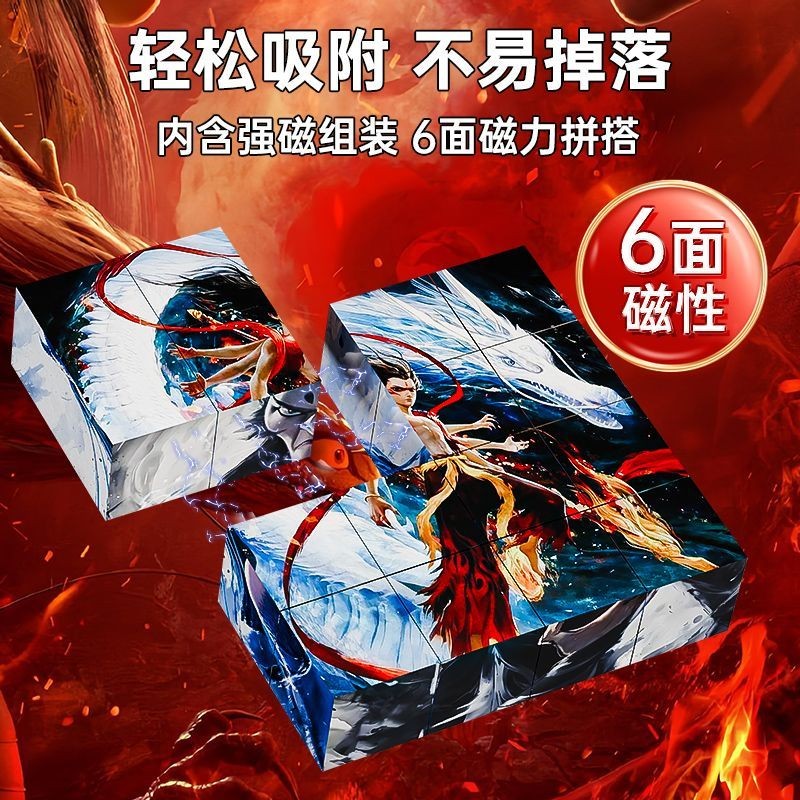 Nezha Rubik's Cube Six-sided Magnetic Puzzle HD Scene Puzzle Children's Educational Toy Nezha Toy