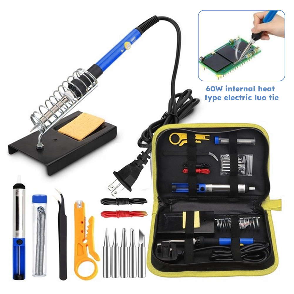 60W 15pcs Soldering Iron Kit DIY Desoldering Pump 220V Household Repair Stand