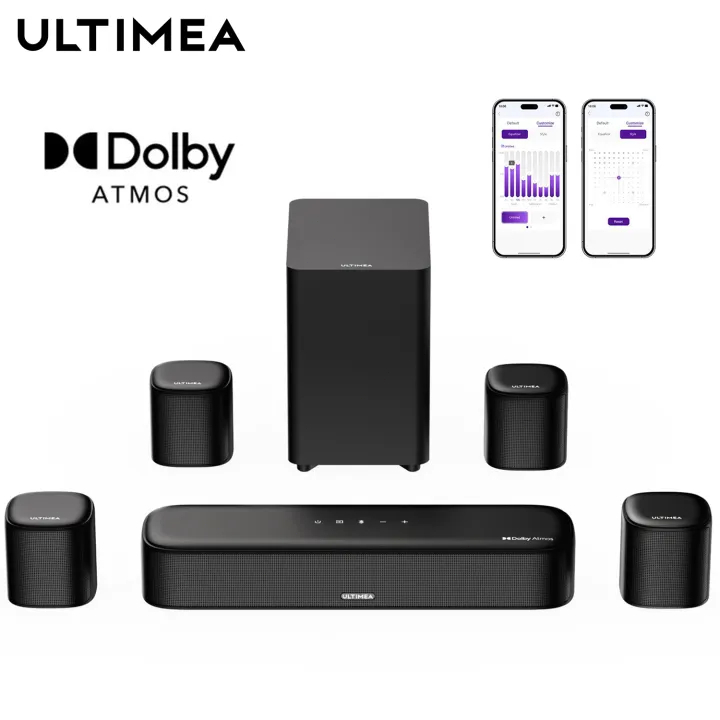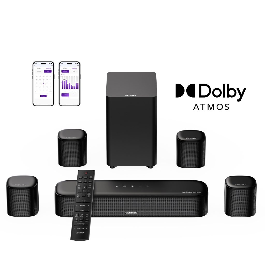ULTIMEA Aura A60 7.1ch Soundbar Dolby Atmos Surround Sound System with Subwoofer & 4 Surround Speakers APP Control 350W