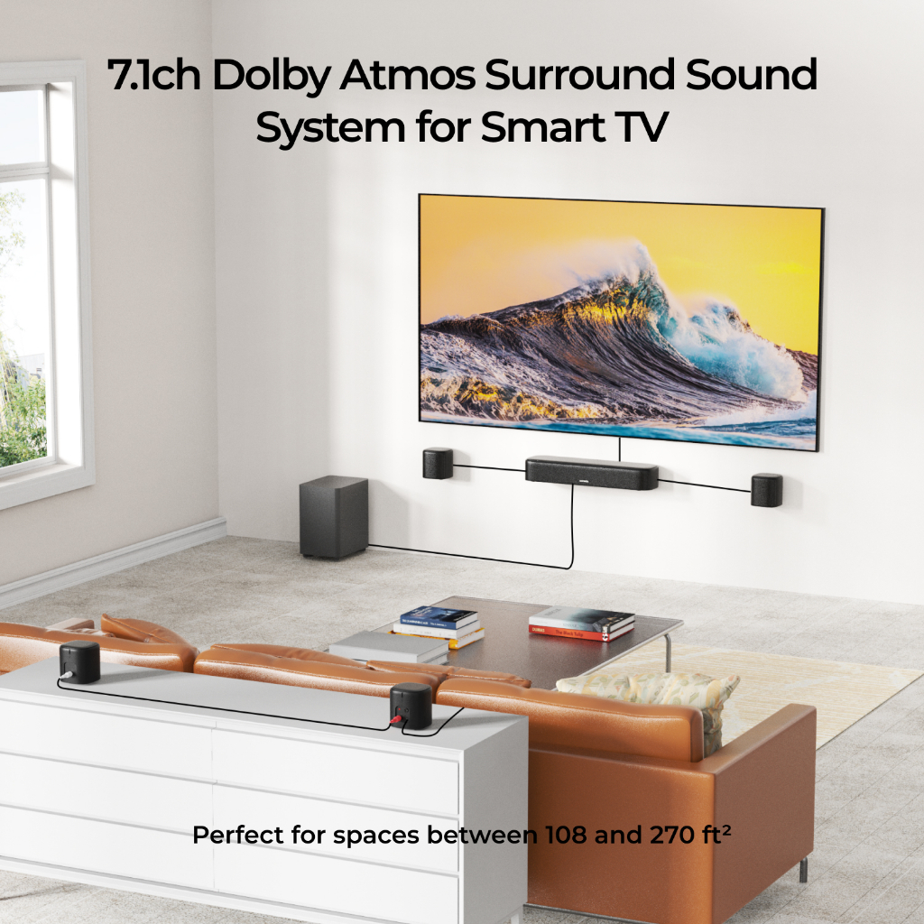 ULTIMEA 7.1 ch Soundbar with Dolby Atmos Surround Sound System for TV with 4 Surround Speakers Soundbar with Subwoofer Aura A60