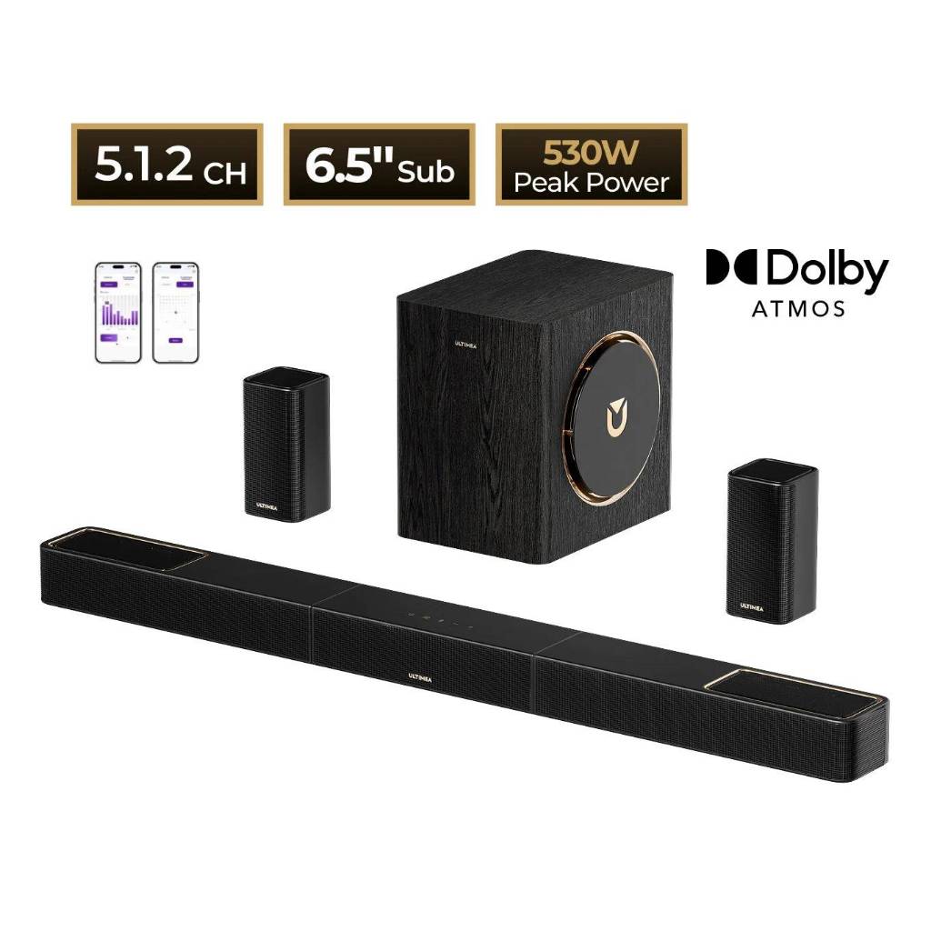 ULTIMEA Skywave Series 5.1.2ch Soundbar Dolby Atmos 6.5″ Wireless Subwoofer Immersive Cinematic Sound Peak Power 530W APP Control