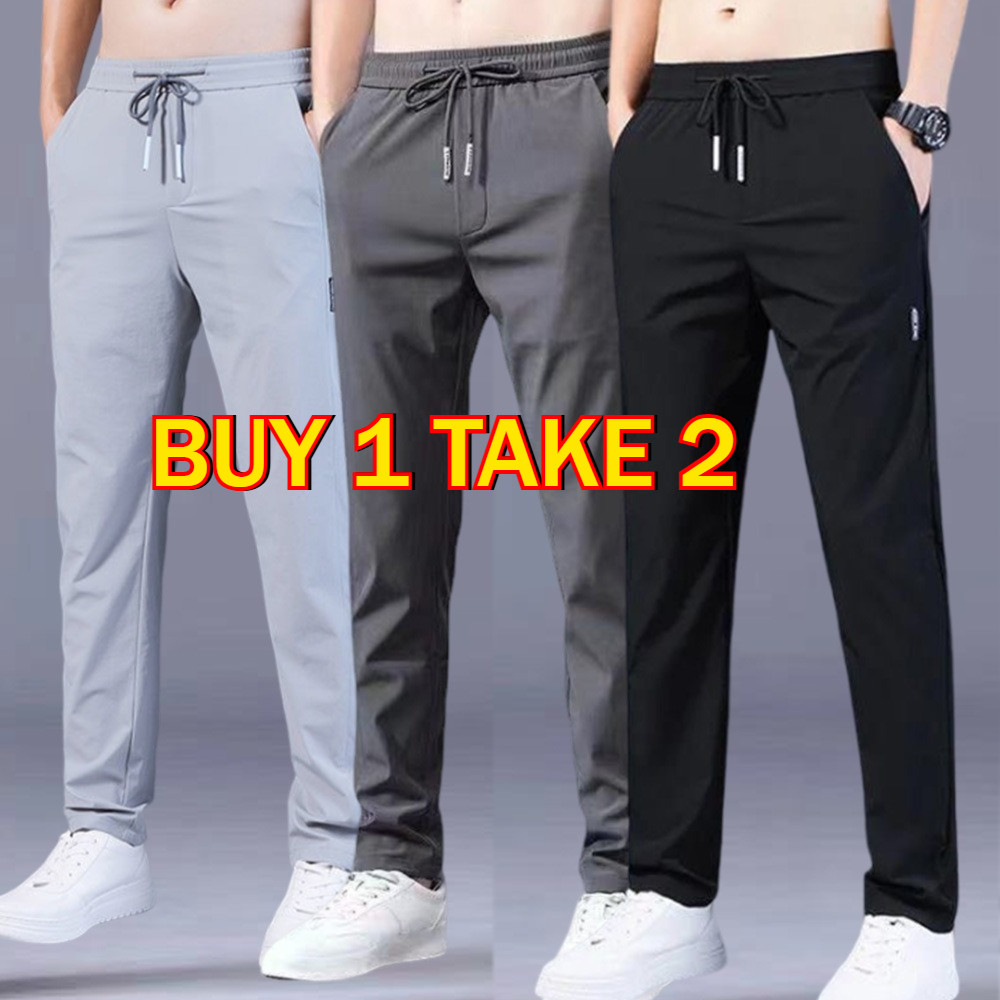 BUY 1 TAKE 2 Korean Fashion Men's Pants Slim-Fit Straight Leg Plus Size Casual Trousers for Men Black Grey
