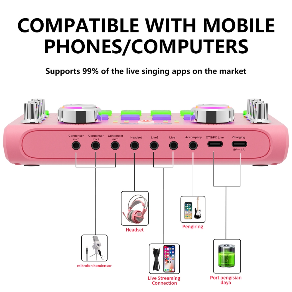 Siborie X66 Pro Soundcard Vocoder Mixer Amplifier,CellPhone Computer General Purpose,For LiveSinging Connect Karaoke, Live Streaming,mixer audio system