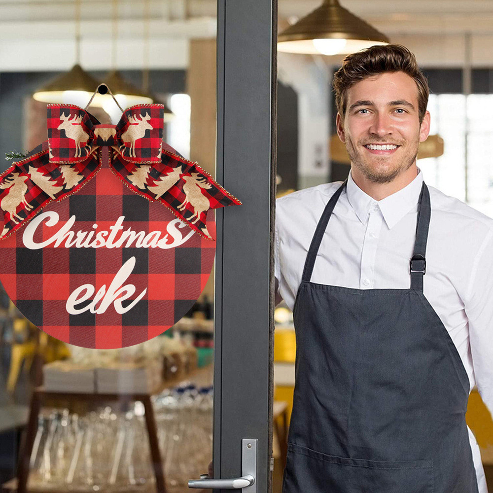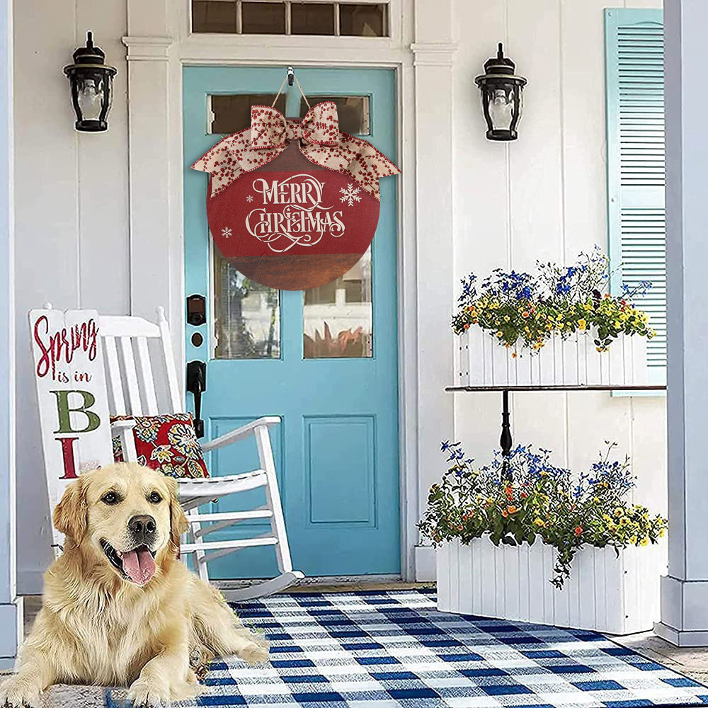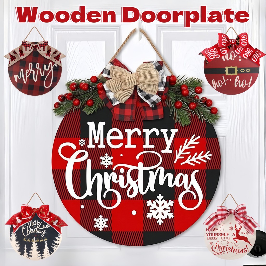 2025 Christmas Wooden Wreath Door Decor Christmas Hanging round Indoor Decorative Ornaments