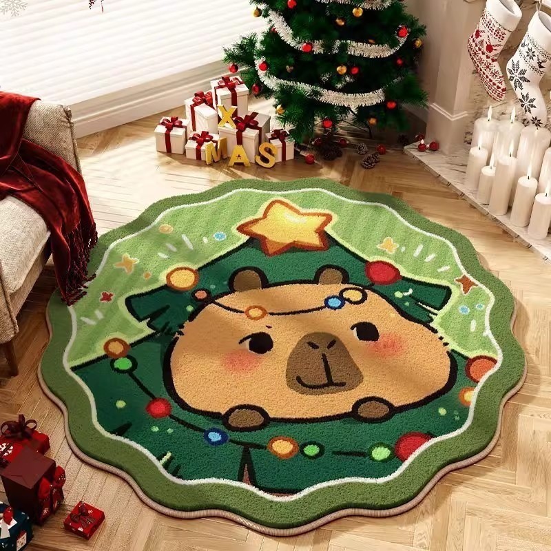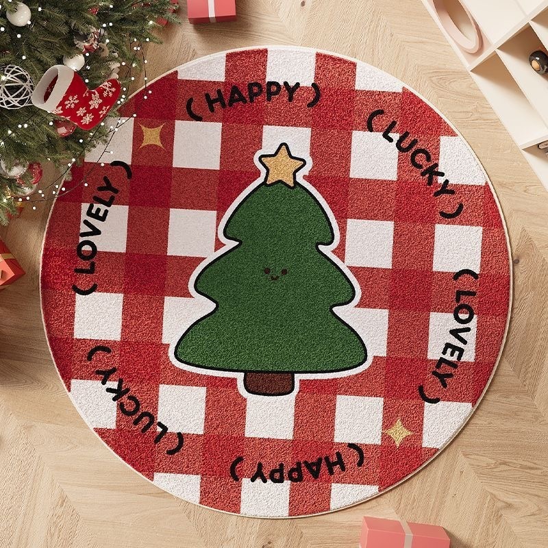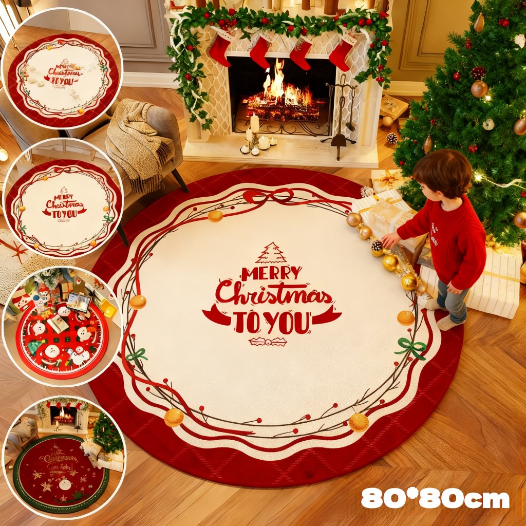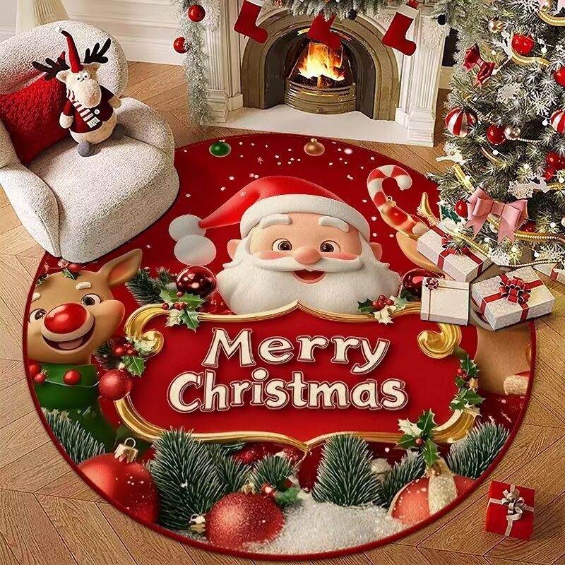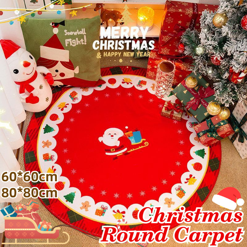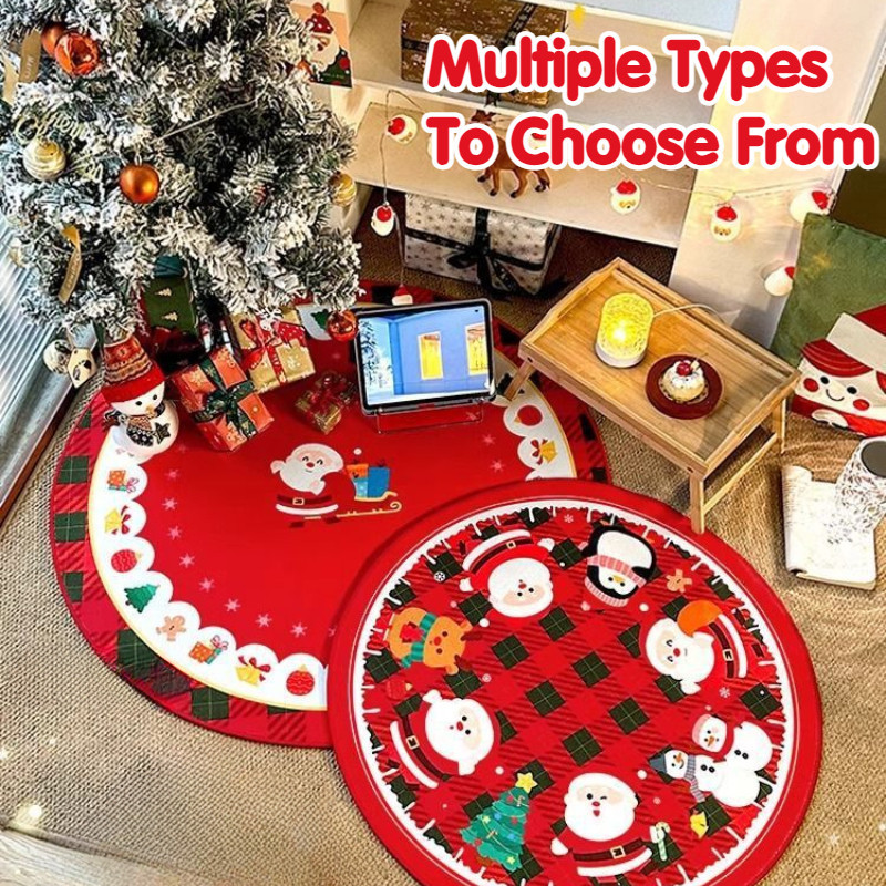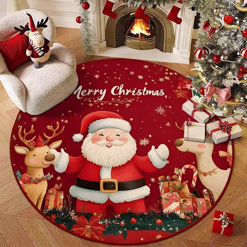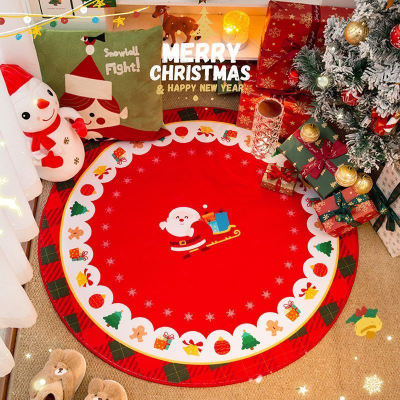 Santa Carpet Christmas Crystal Round Skirt Floor Mat Fleece Christmas Tree Skirt Cover Base Blanket