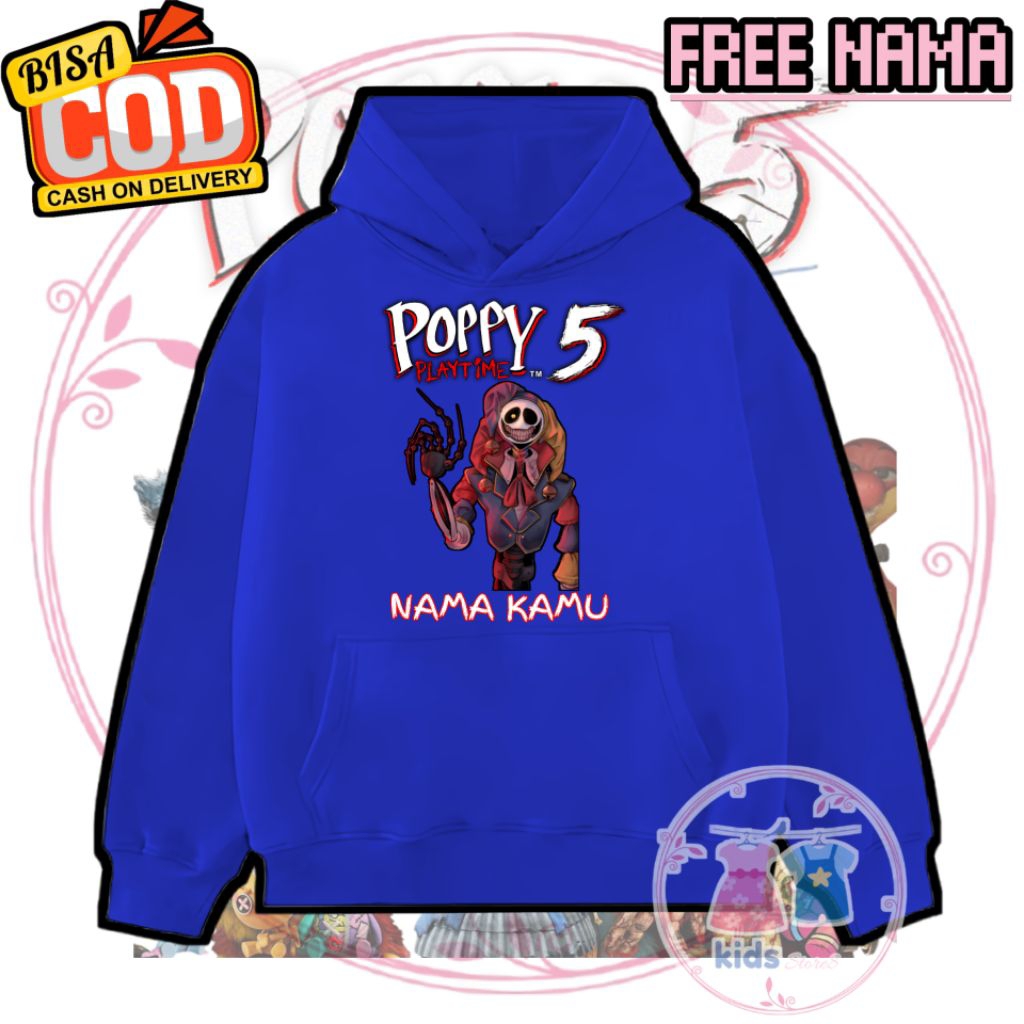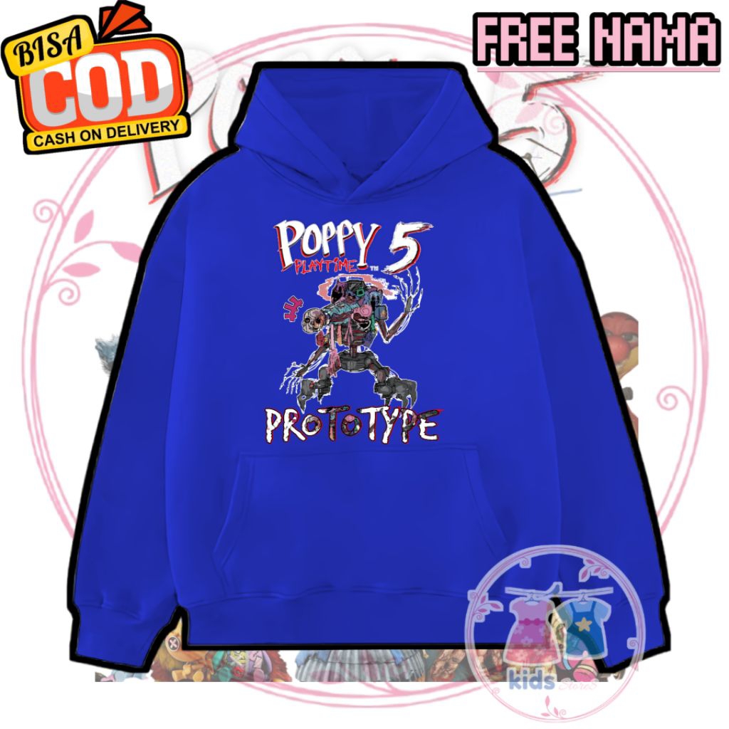 (FREE NAME) PROTOTYPE Poppy PLAYTIME 5 Children's Hoodie Jacket Children's Hoodie Sweater 3-12 years - Unisex - Free custom Name - biru/Blue