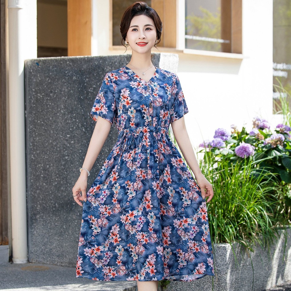 Floral Plus Size Women's Short-Sleeved Dress Summer New Style Loose 2025 Classy Mom Slimmer Look Long Skirt