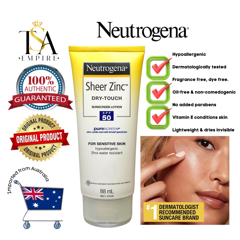 Neutrogena Sheer Zinc Dry Touch Mineral Sunscreen Lotion SPF50 for Sensitive Skin 88ml