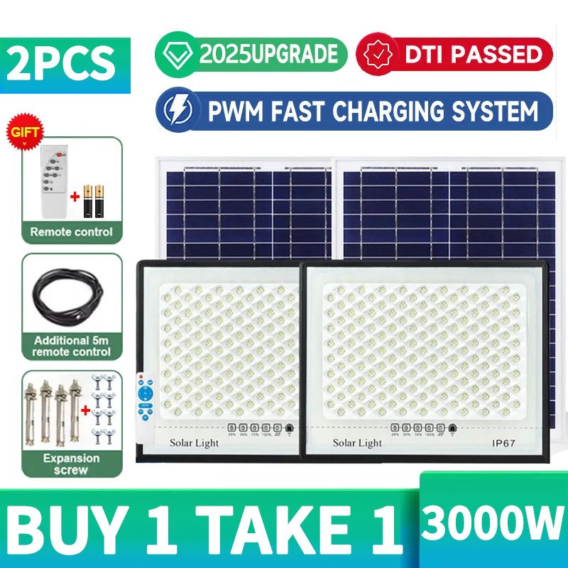 3000W BUY 1 TAKE 1 Solar Light Outdoor Waterproof LED IP67 Light with High Brightness