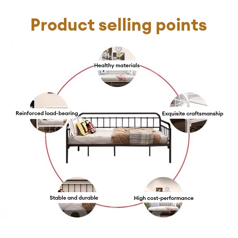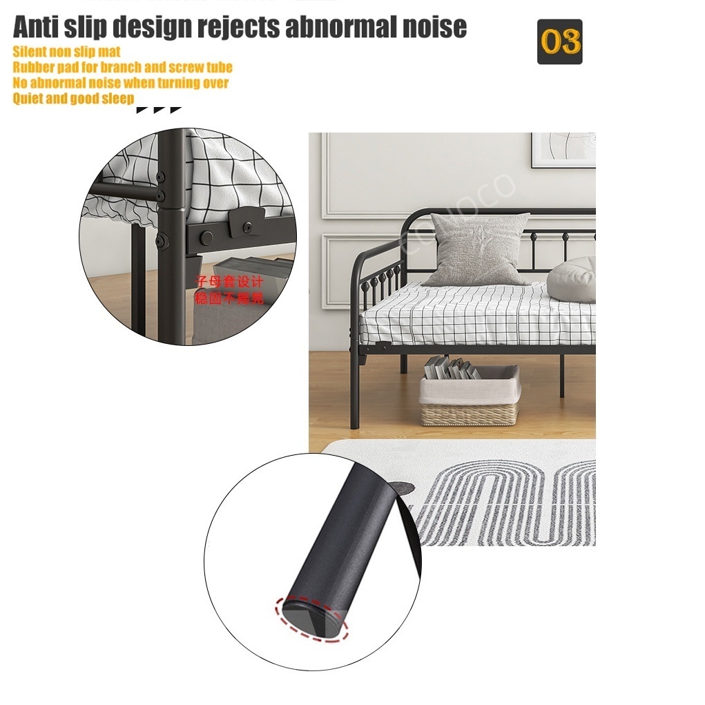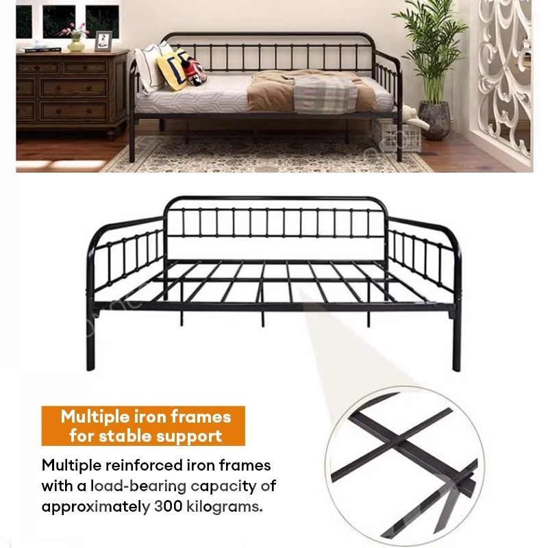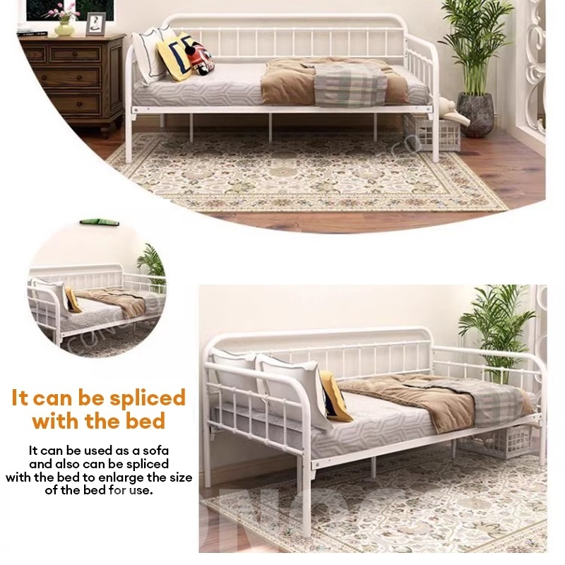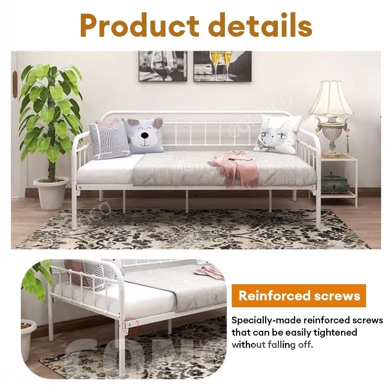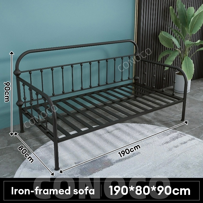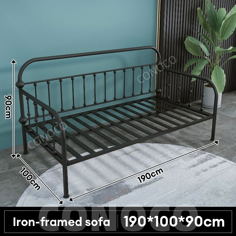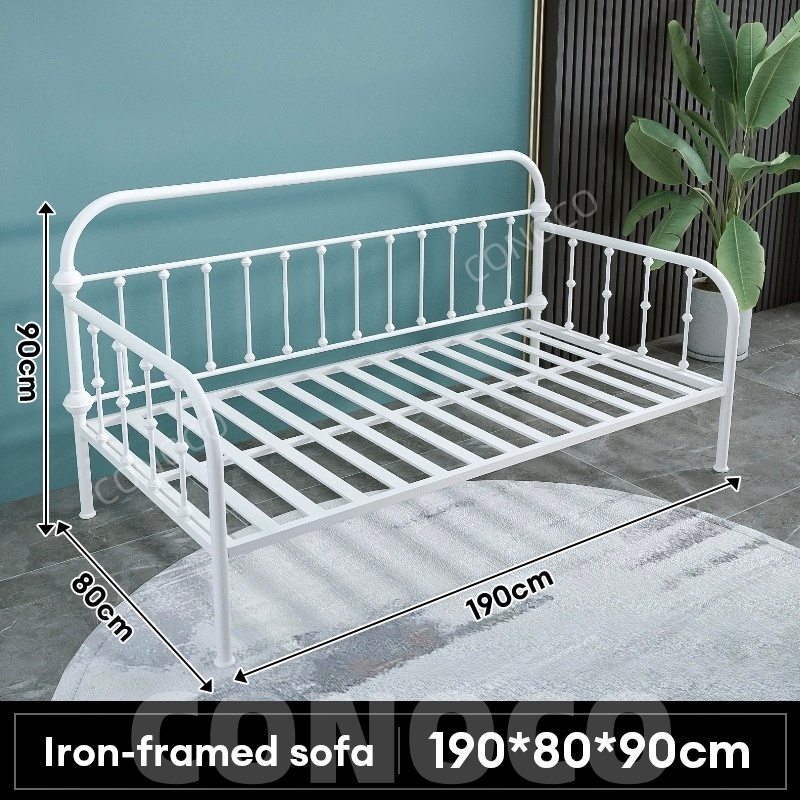 CONOCO Iron Sofa Bed Iron Sofa Bed Frame Heavy Duty 500kg Thickened Pipe Anti-Slip White/Black