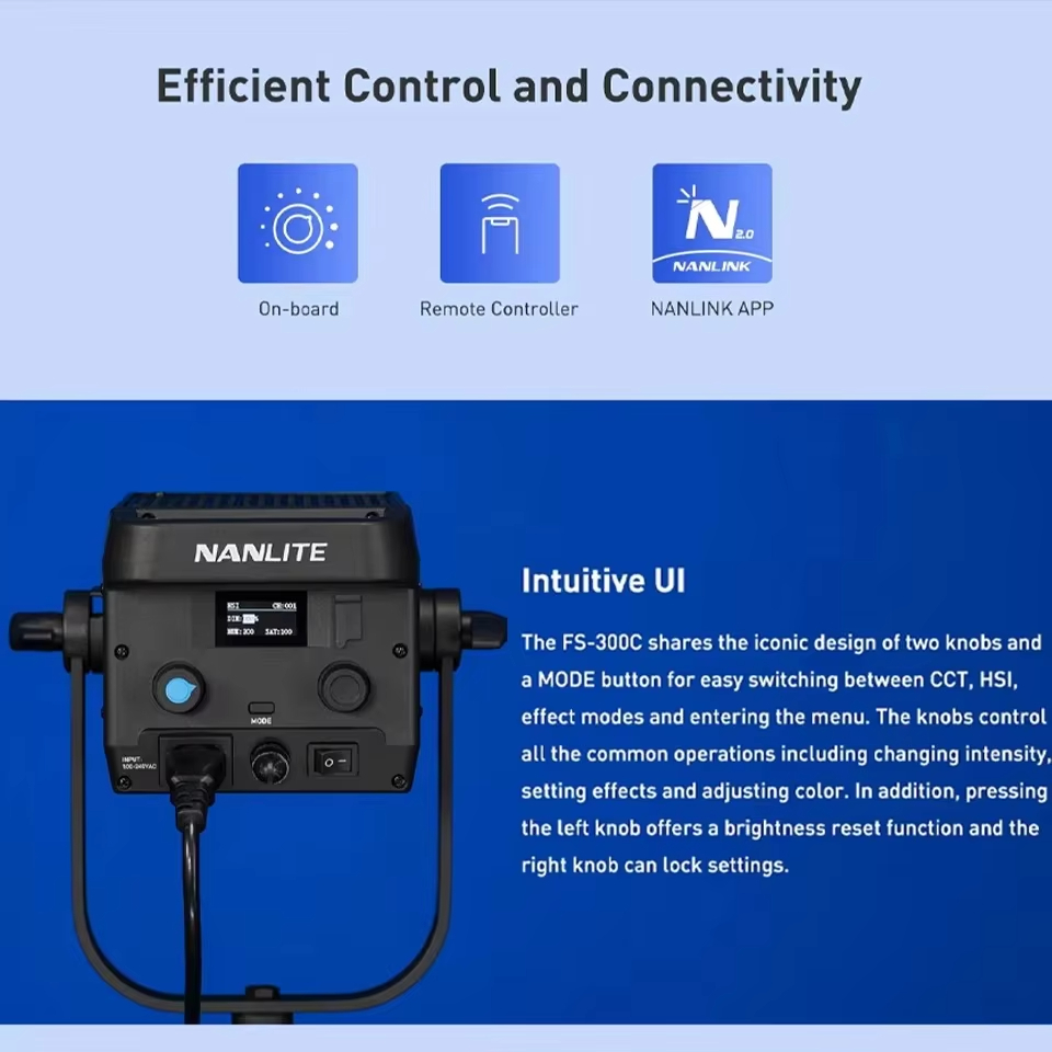 Nanlite FS-300C 300W RGBW LED Monolight 2700K-7500K Professional Photography Light Strobe Lamp for Video Studio Live Stream