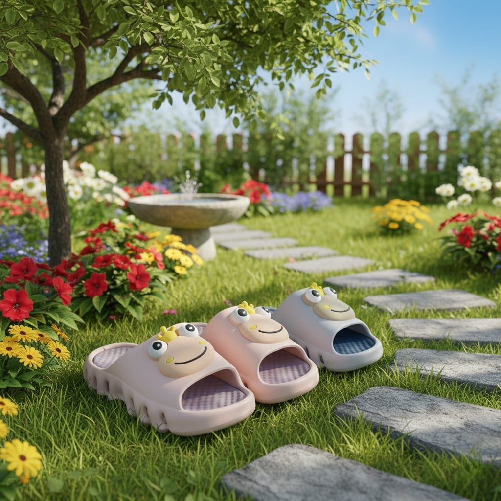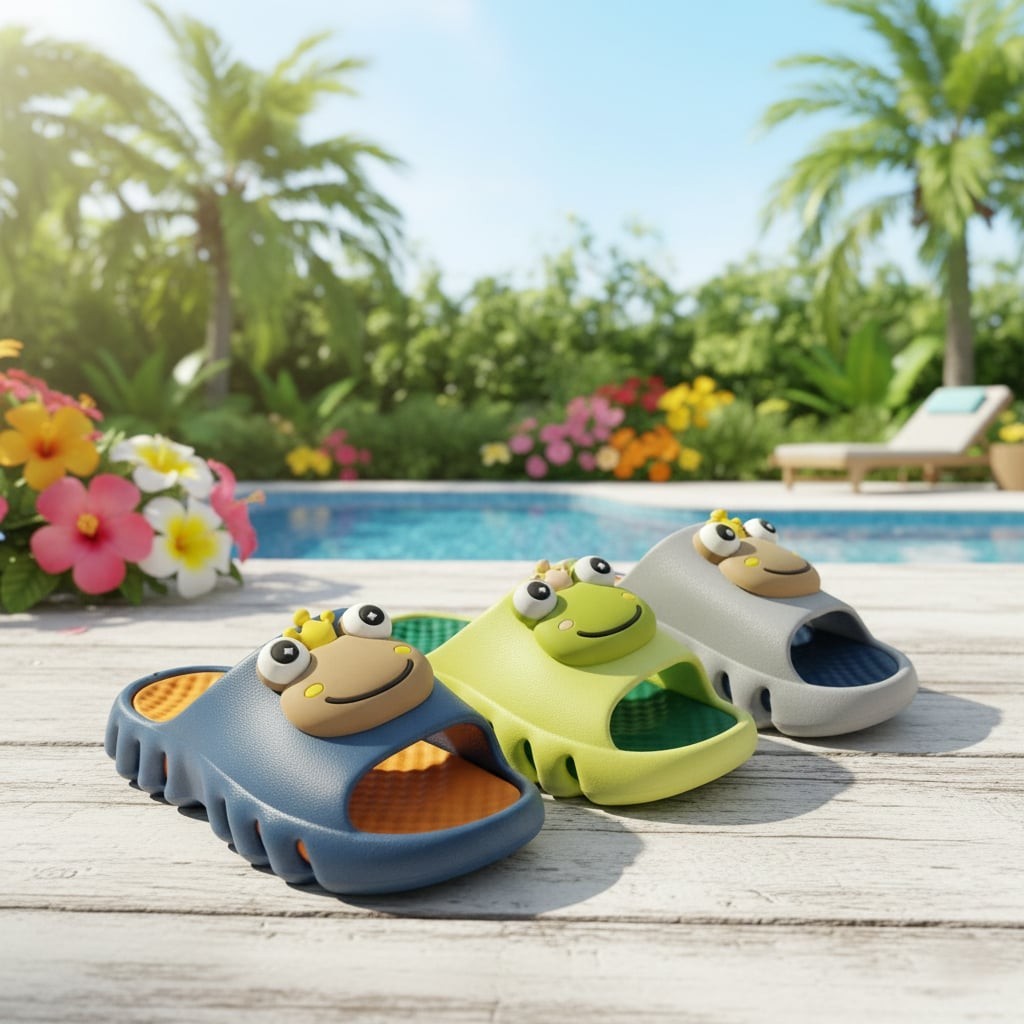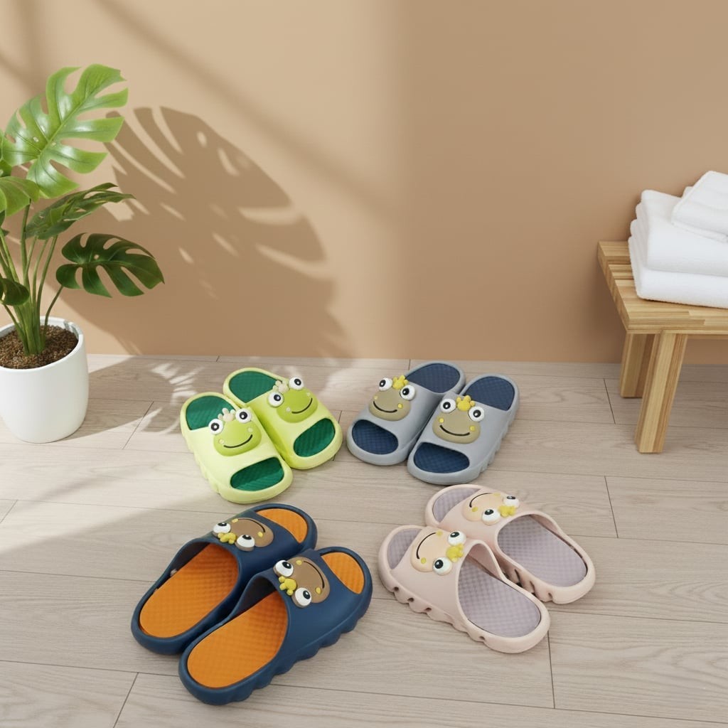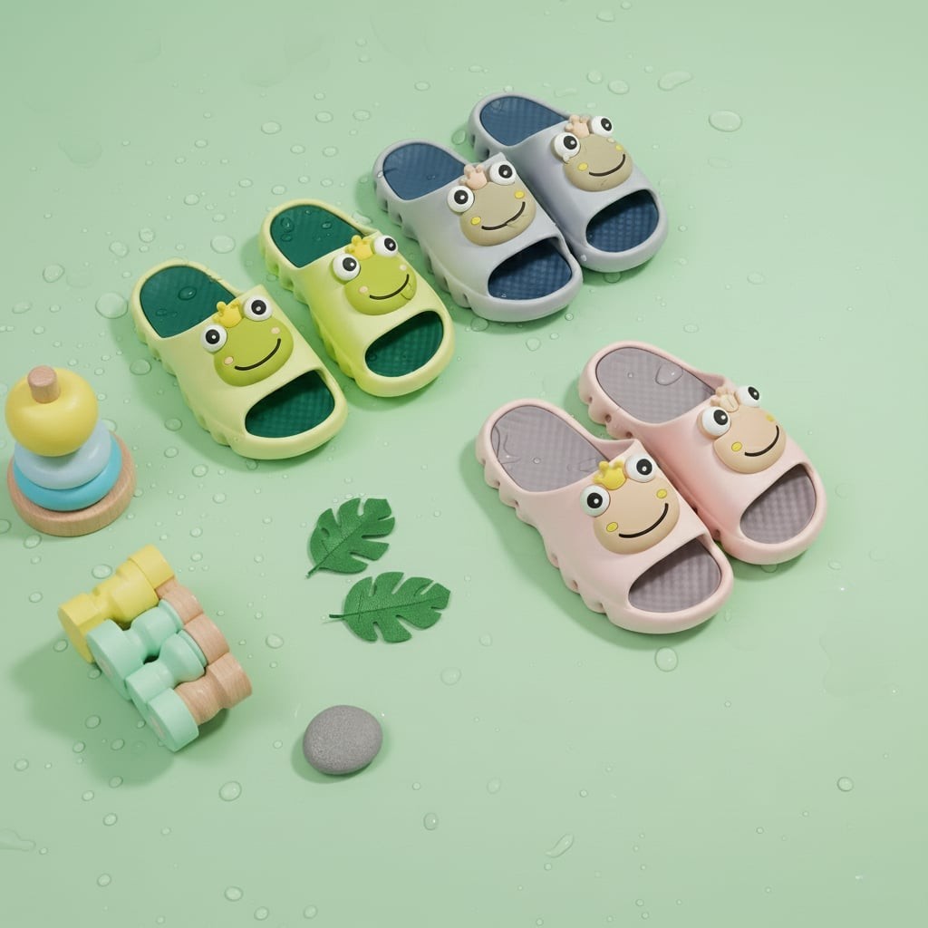 #24821 EVA High Elastic Quality Kids Slip On Summer Slipper Cute Frog Design