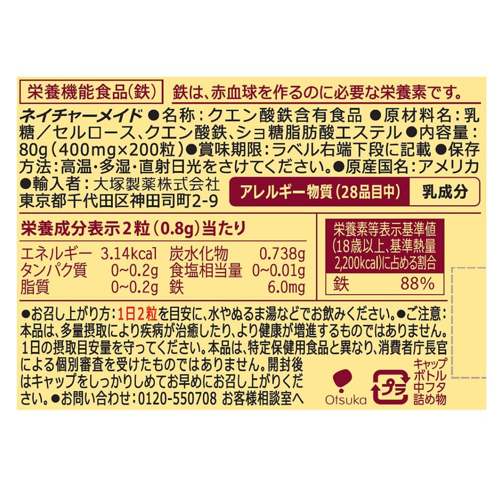 NatureMade Otsuka Pharmaceutical Iron 200 tablets for 100 days