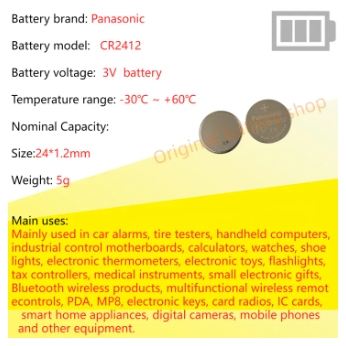 CR2412 battery Car key remote control coin cell battery high temperature resistance battery
