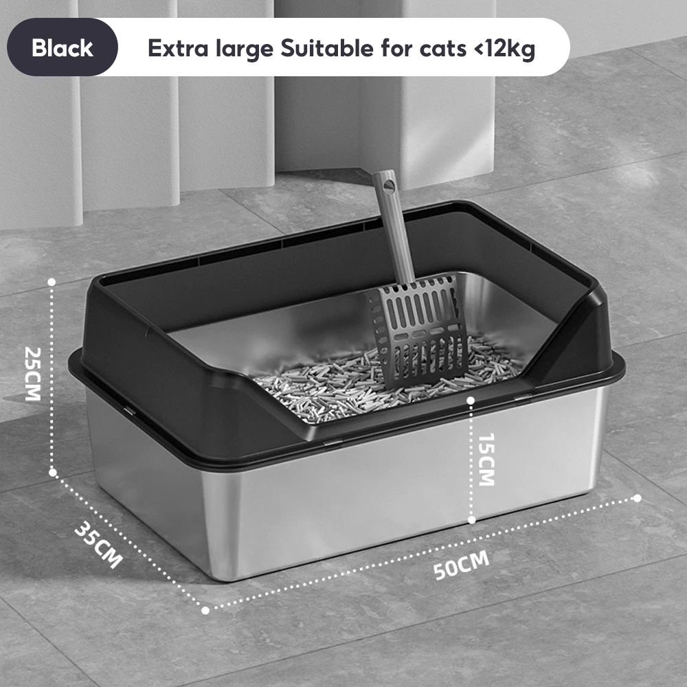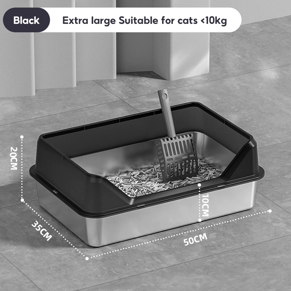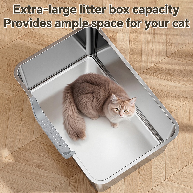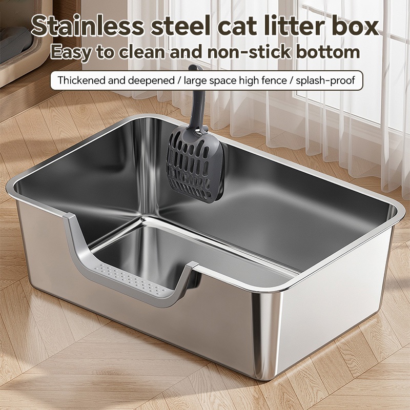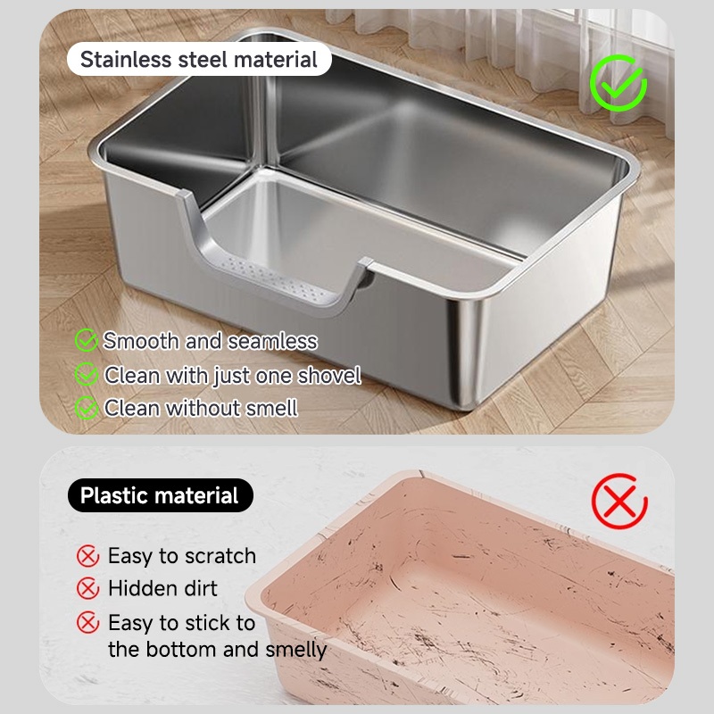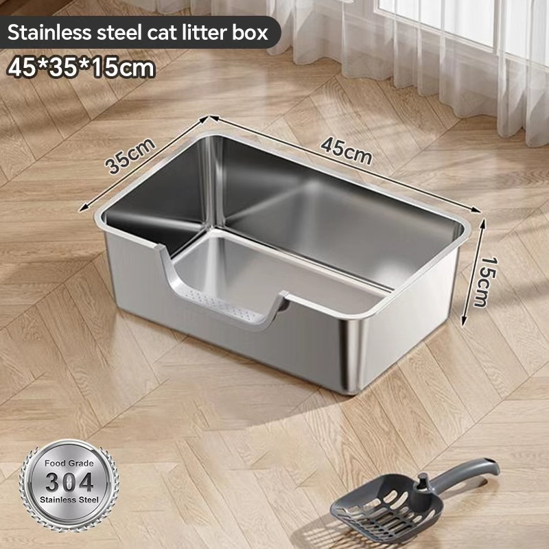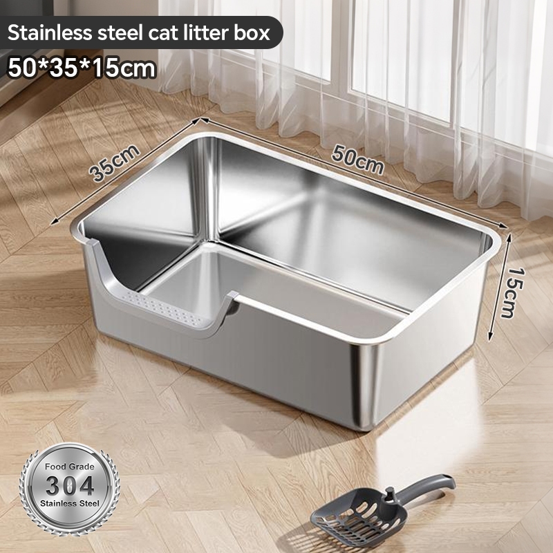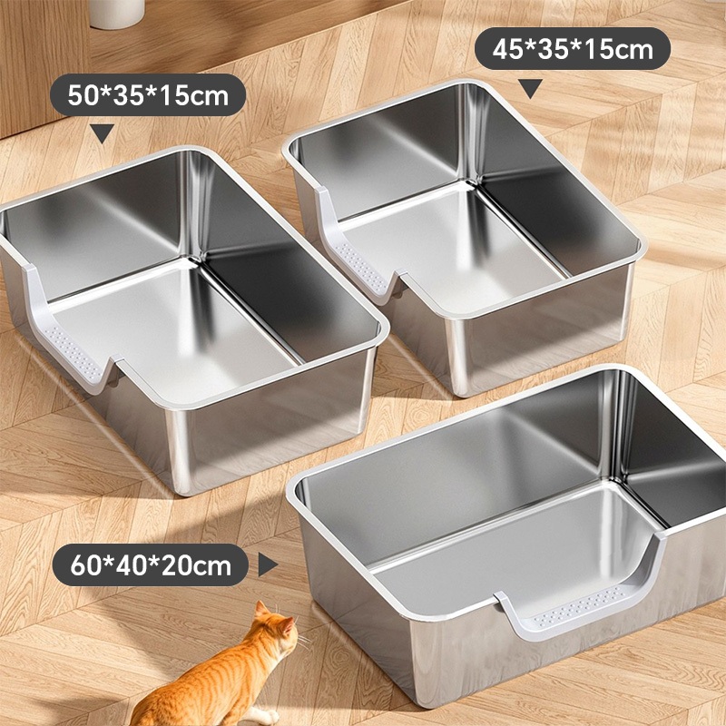 【Ready Stock】304 Stainless Steel Cat Litter Box High Fence Anti-Splash Odor Control Easy Clean