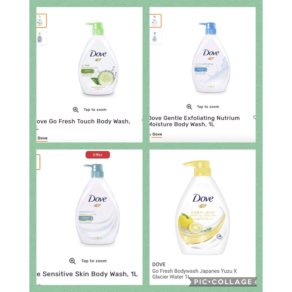 Dove Go Fresh Cucumber Green Tea, Japanese Yuzu, Dove Sensitive, Exfoliating, Deep nourishing 1L