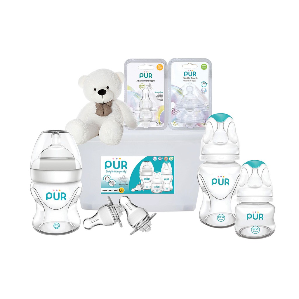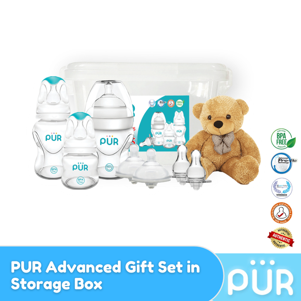 Pur Newborn Gift Set with Container (100% Anti-Colic & BPA Free Bottles)