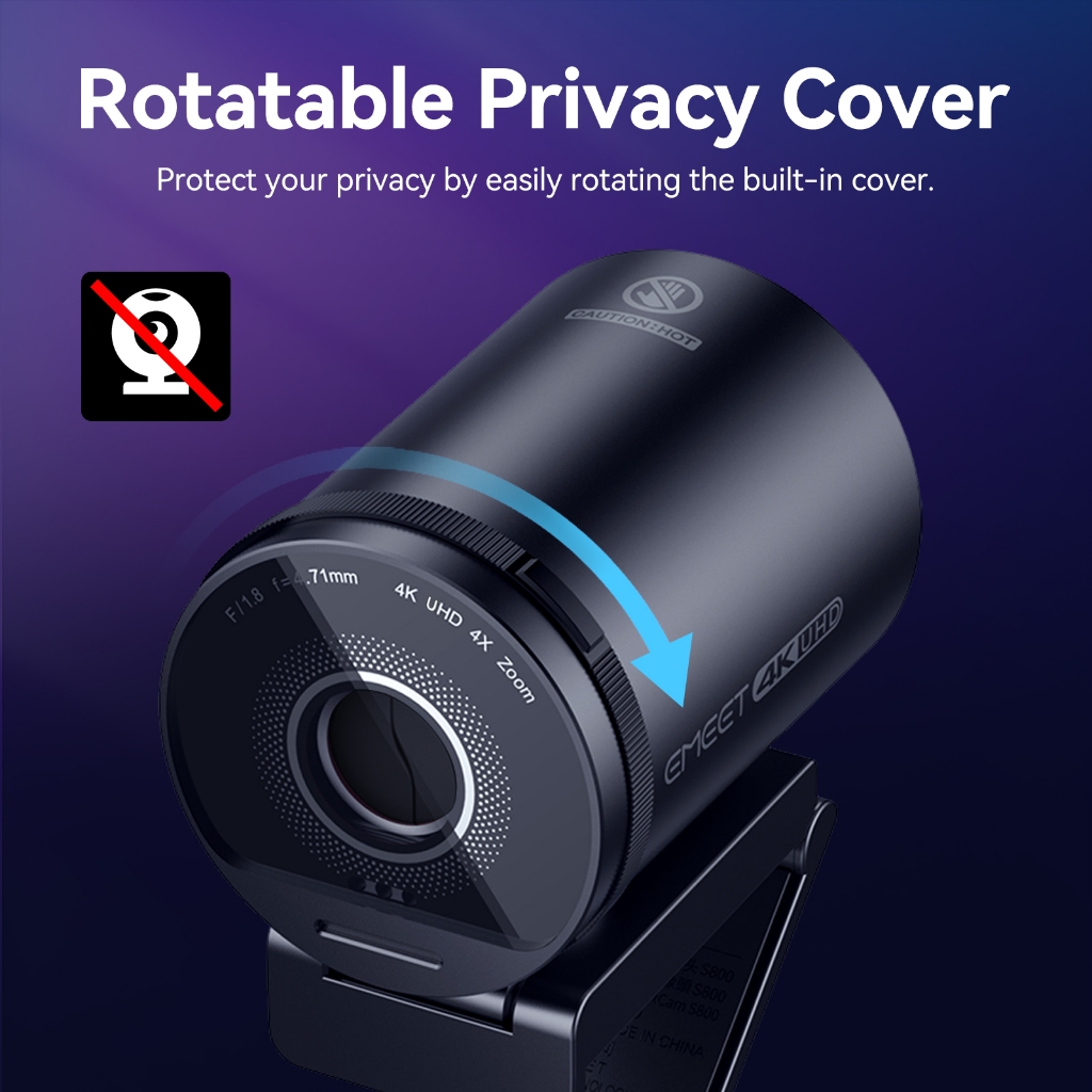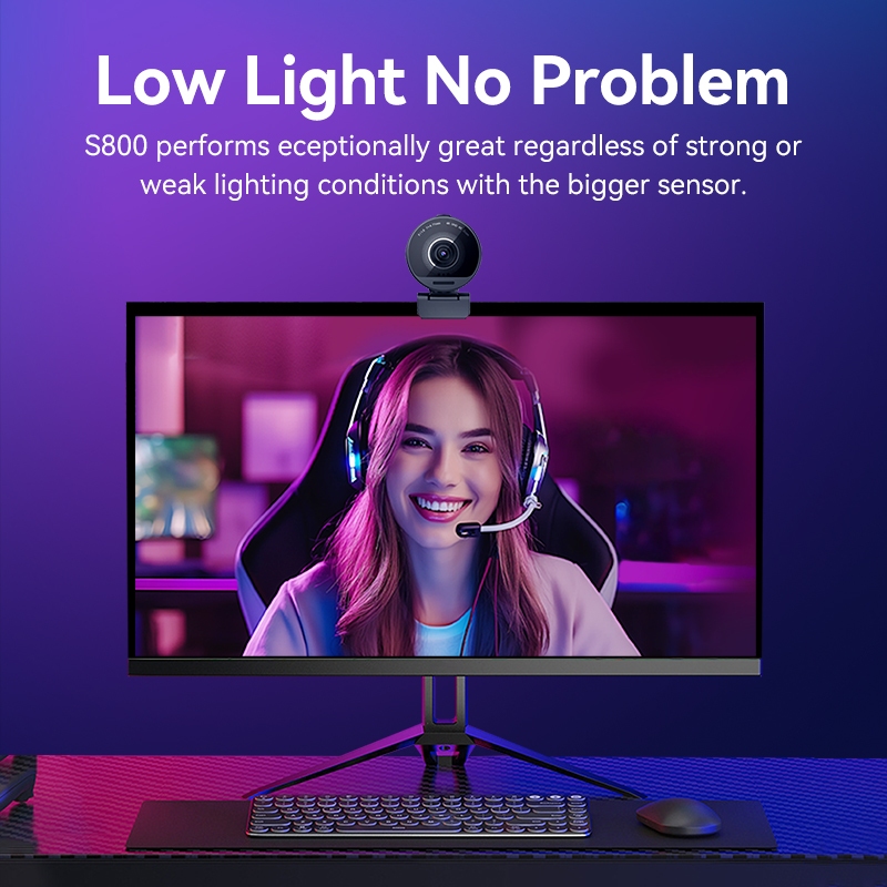 EMEET S800 4K Webcam | 4K@30fps/1080P@60fps | Sony 1/2" Sensor | HDR | Fast Autofocus | Streaming