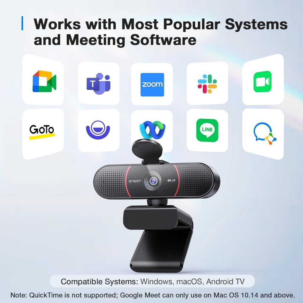 EMEET C960 4K Webcam 4K UHD Sony Sensor PDAF Auto Focus Dual AI Noise-Cancelling Mics Auto Light