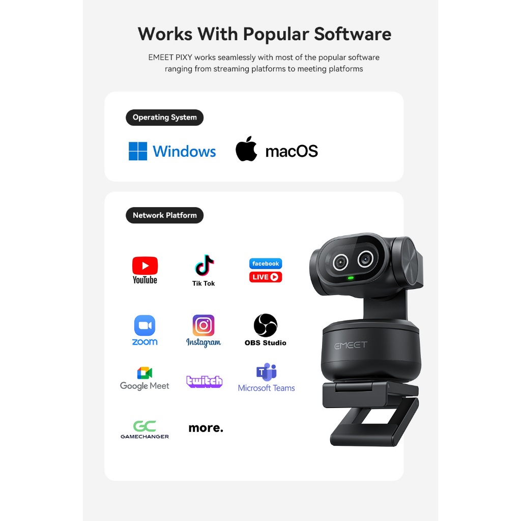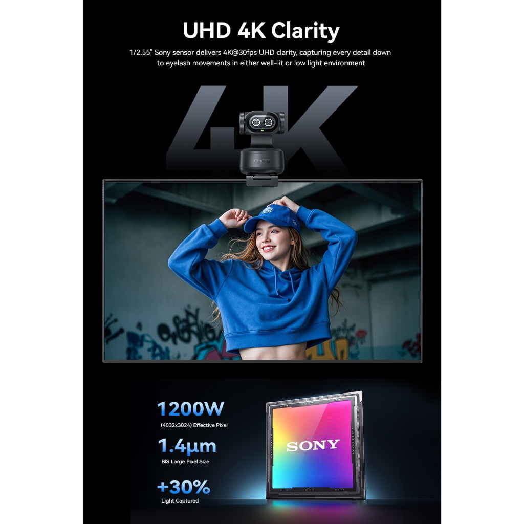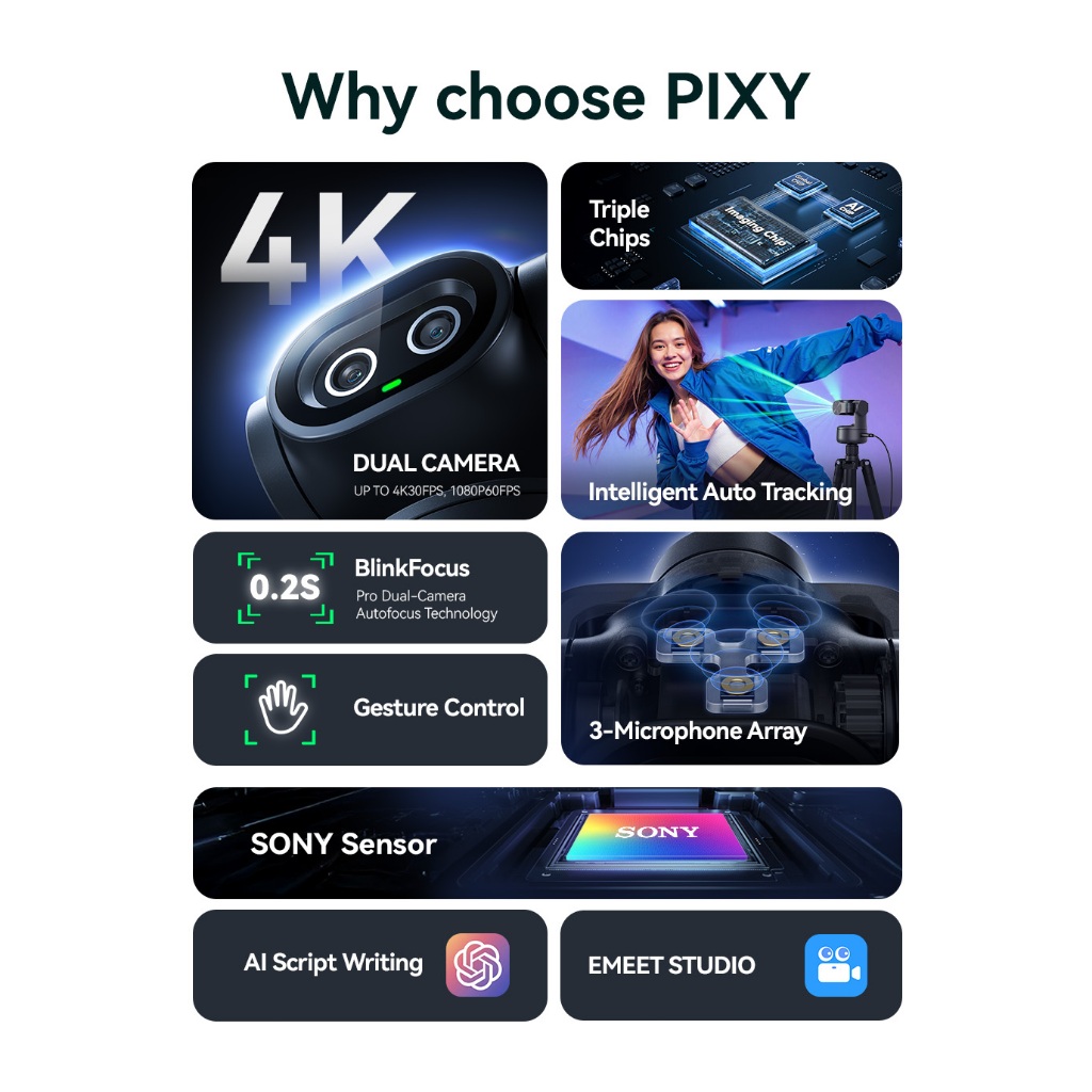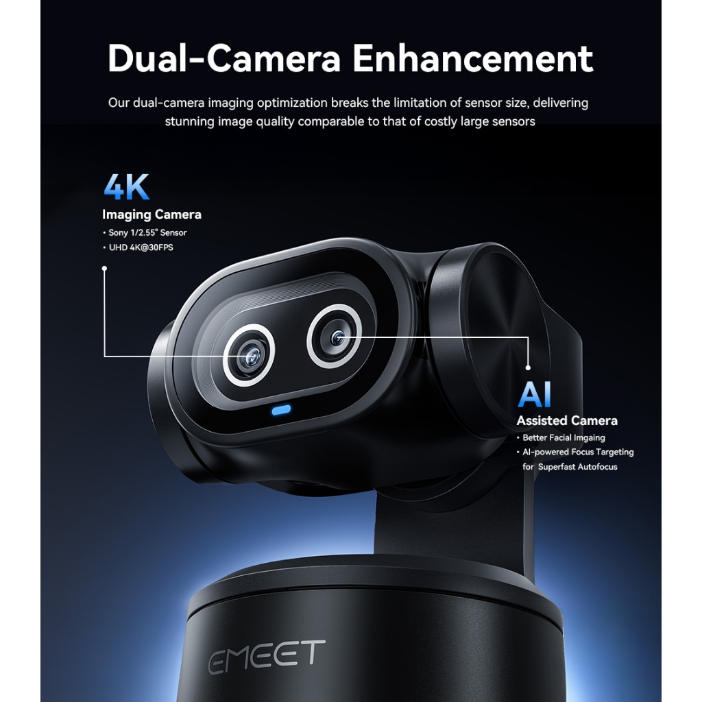 EMEET PIXY Dual-Camera AI PTZ 4K Webcam AI Tracking PDAF Autofocus Gesture Control Streaming Gaming