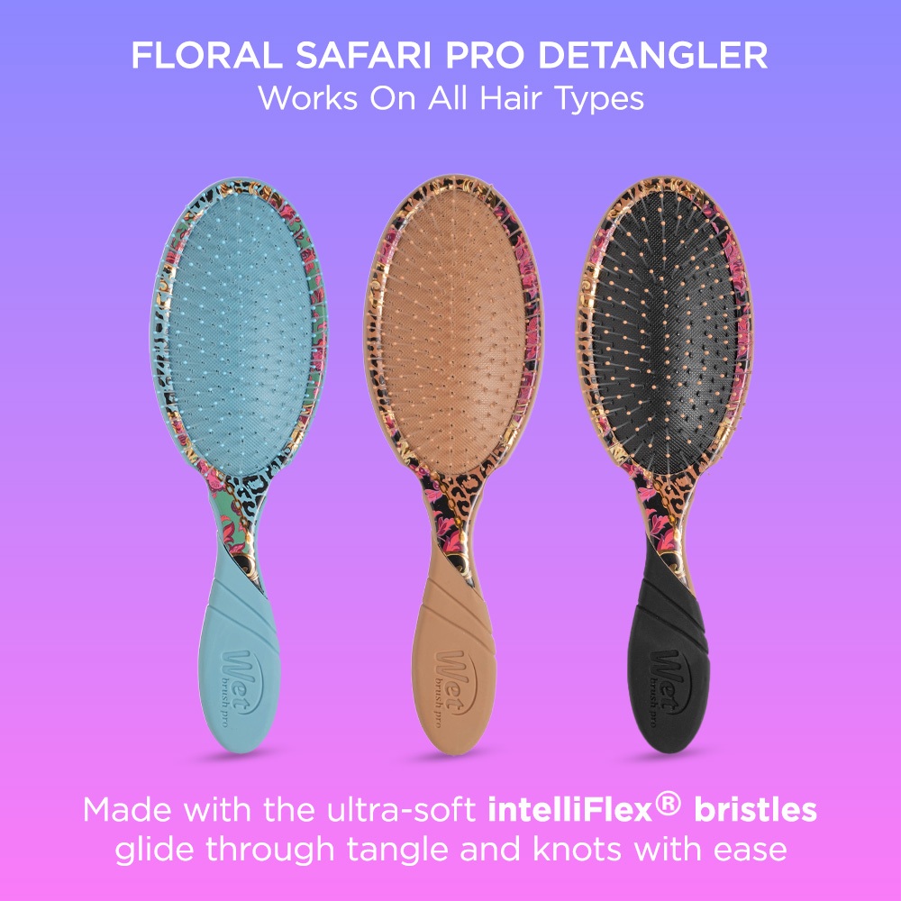 Wet Brush Pro Detangler Floral Safari Blue with Ultra Soft Intelliflex Bristles EasyGrip