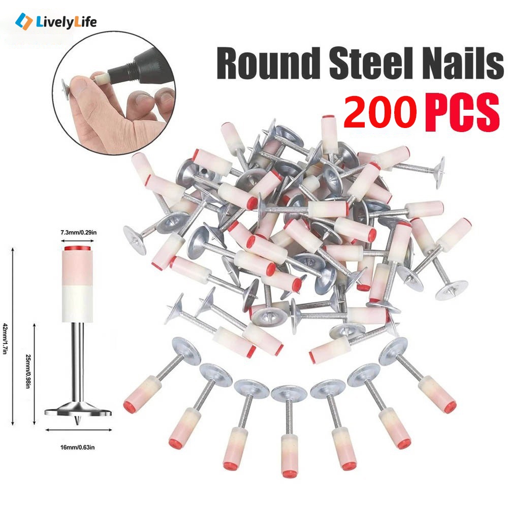 400PCS Steel Nails for Nail Gun, Ceiling Rivet Tool Accessories Round Head Manual Construction Nai