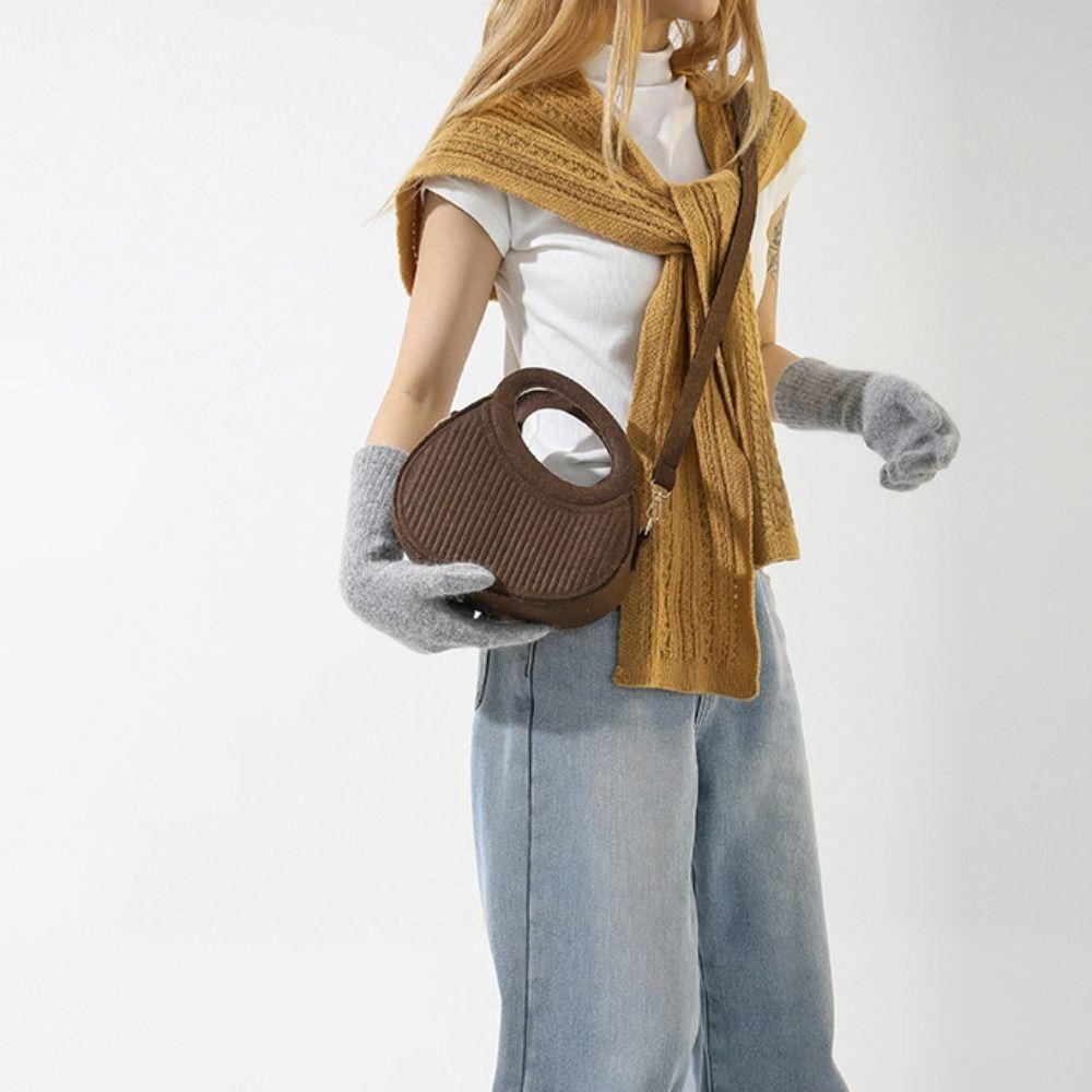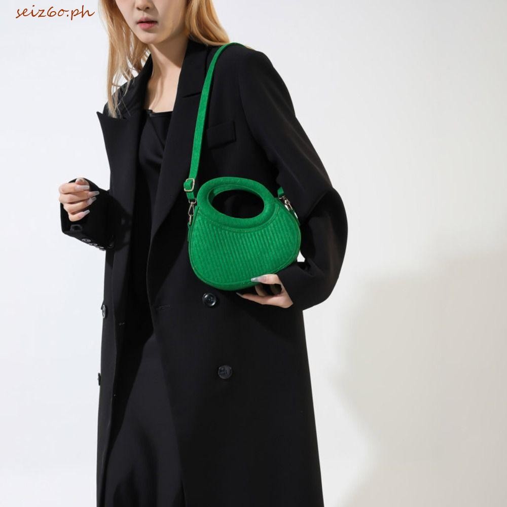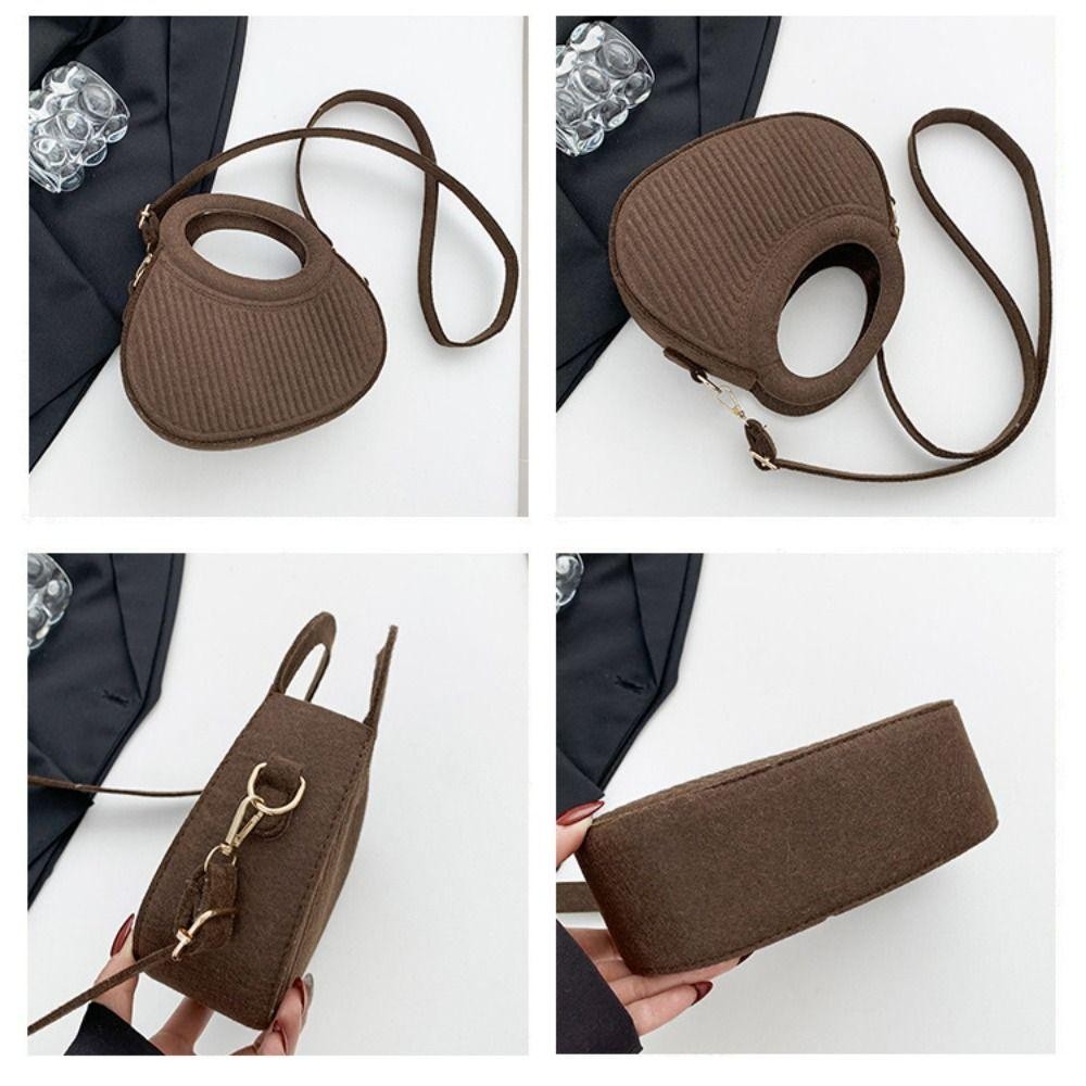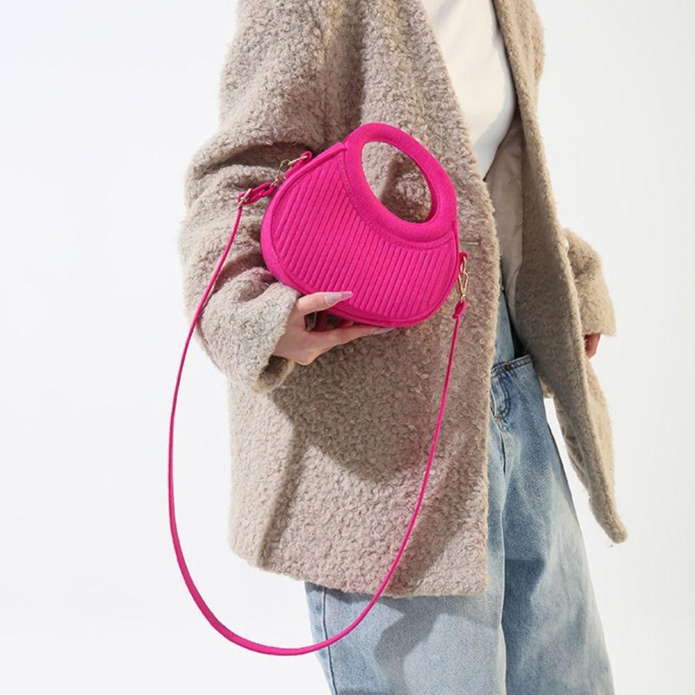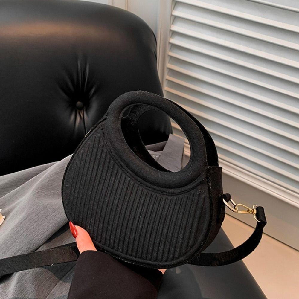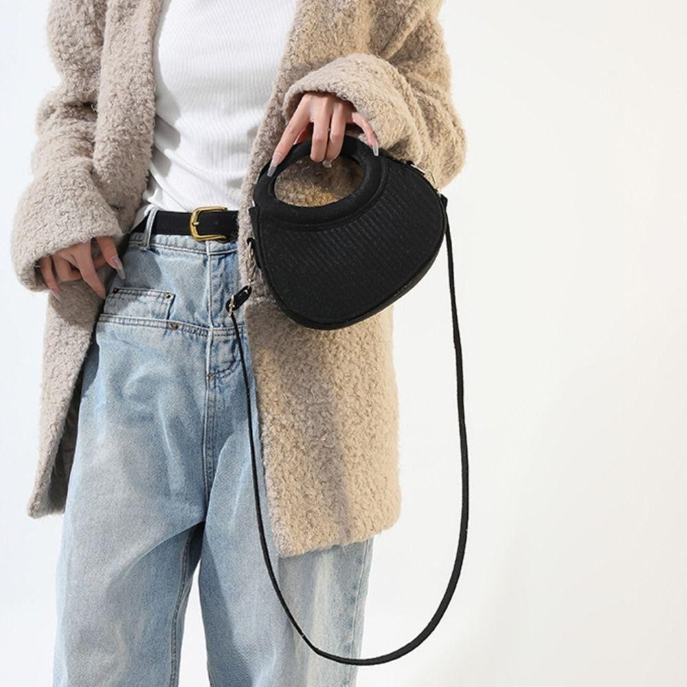 SEIZ6O Felt Crossbody Bag, PU Leather Korean Style Hobos Handbag, Elegant Half Moon Bag Handbag Solid Color Pleated Shoulder Bag Outdoor