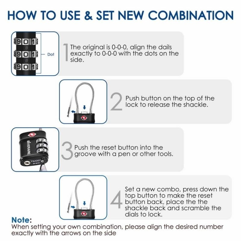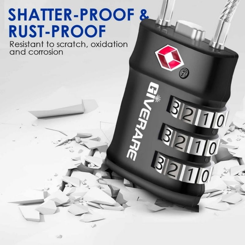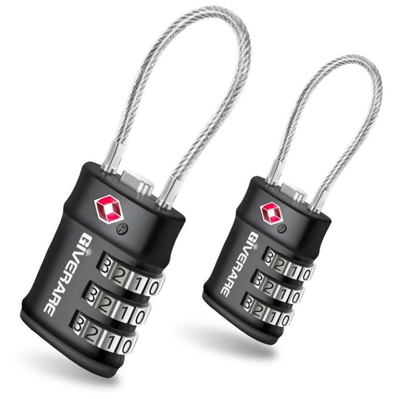 GIVERARE 2 Pack TSA Approved Luggage Locks, 3-Digit Keyless Resettable Combination Travel Cable Lock