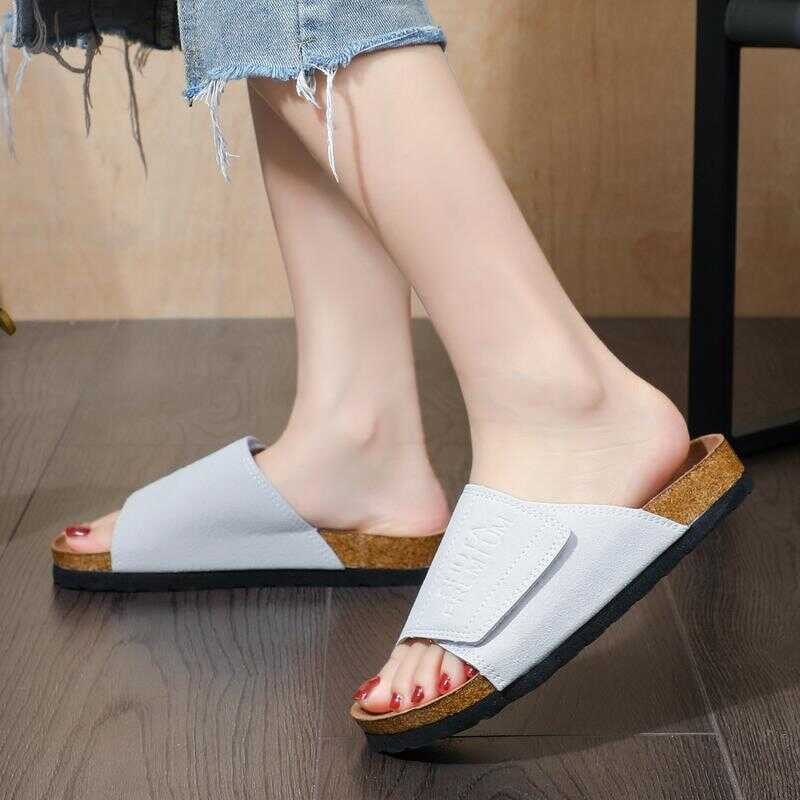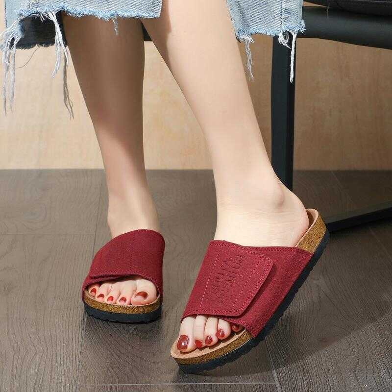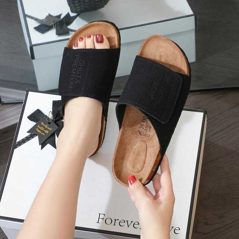 Authentic SHUTA New Suede Leather Cork Slippers Women Summer Classic Flat Shoes Male Fashion Outsi f