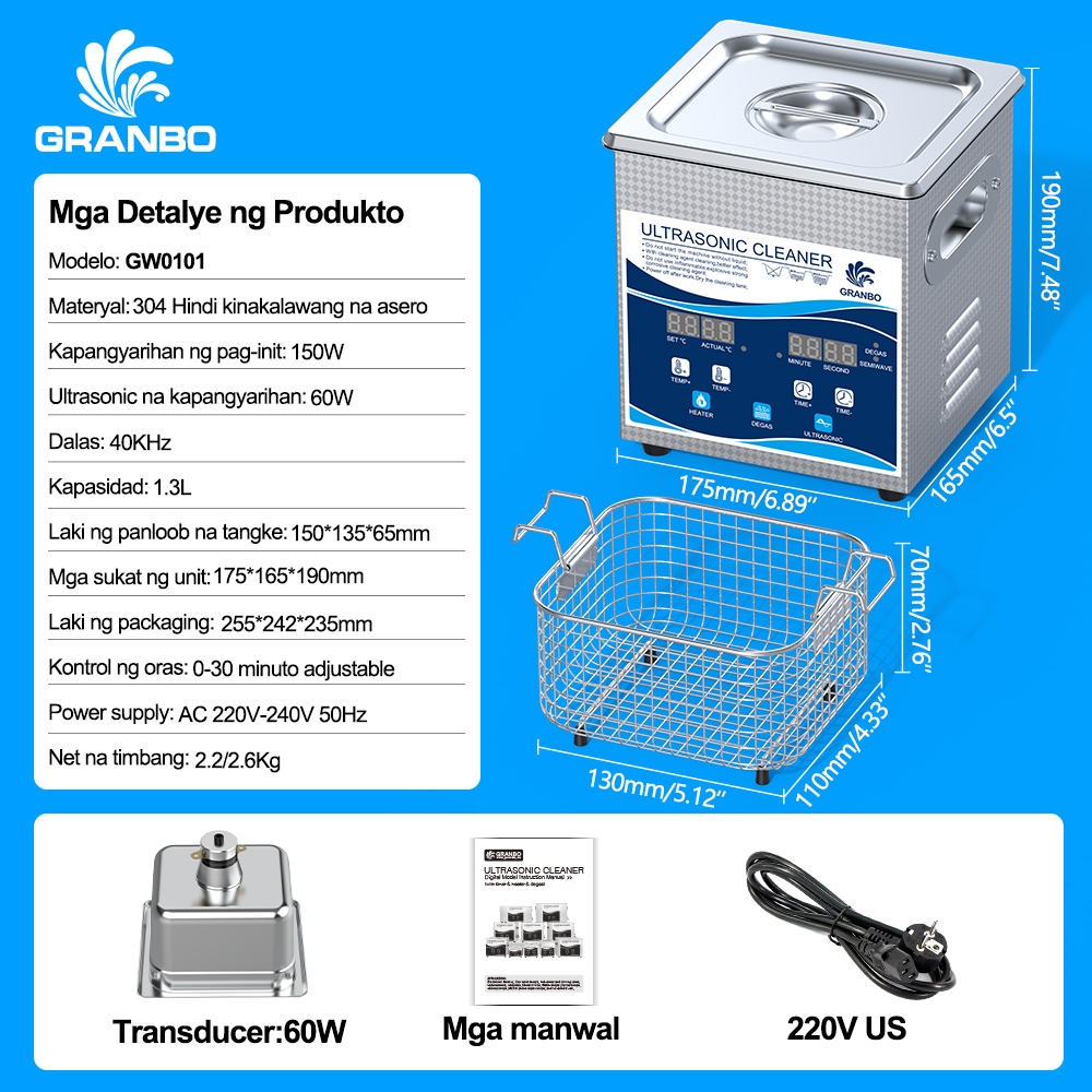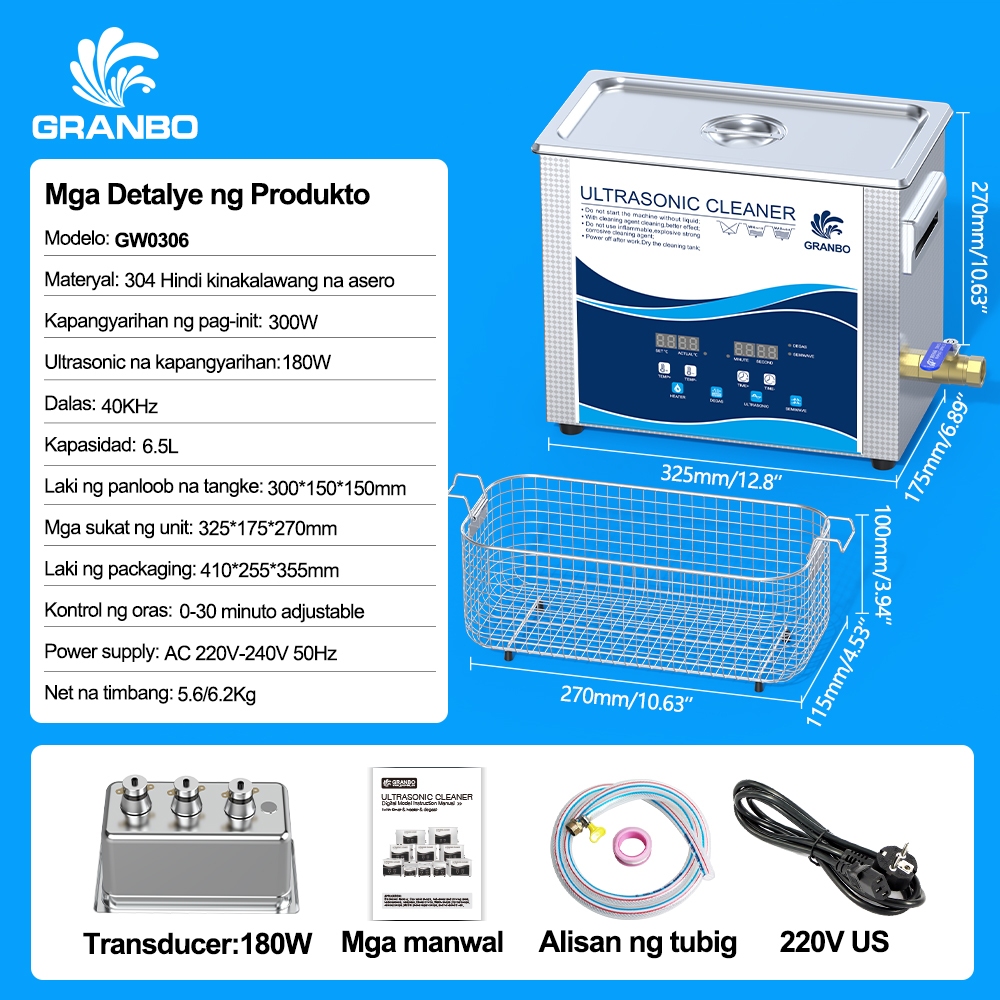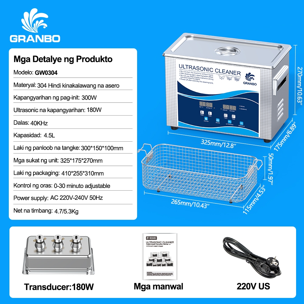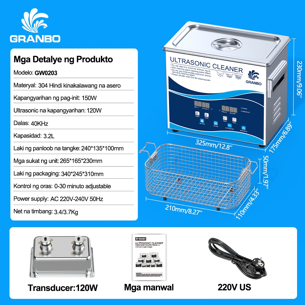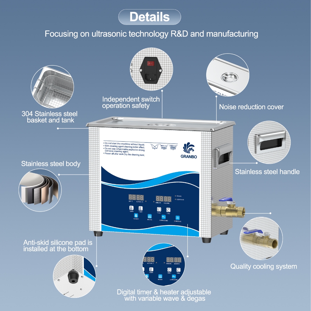 Granbo Ultrasonic Cleaner,3.2L/15L 300W 40kHz Digital Ultrasonic Cleaning Machine with Upgraded Degassing , Timer and Heater for Lab ,Dental,Retainer Jewelry Tools