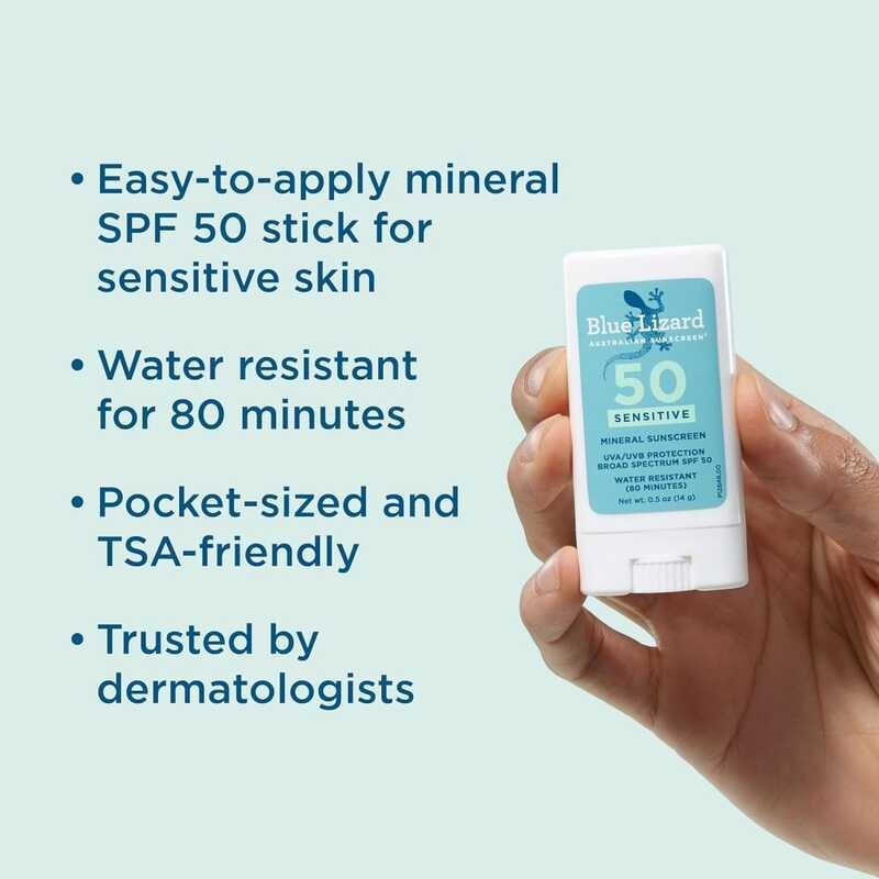 BLUE LIZARD Sensitive Mineral Sunscreen Stick With Zinc Oxide, SPF 50+, Water Resistant, UVA UVB 647
