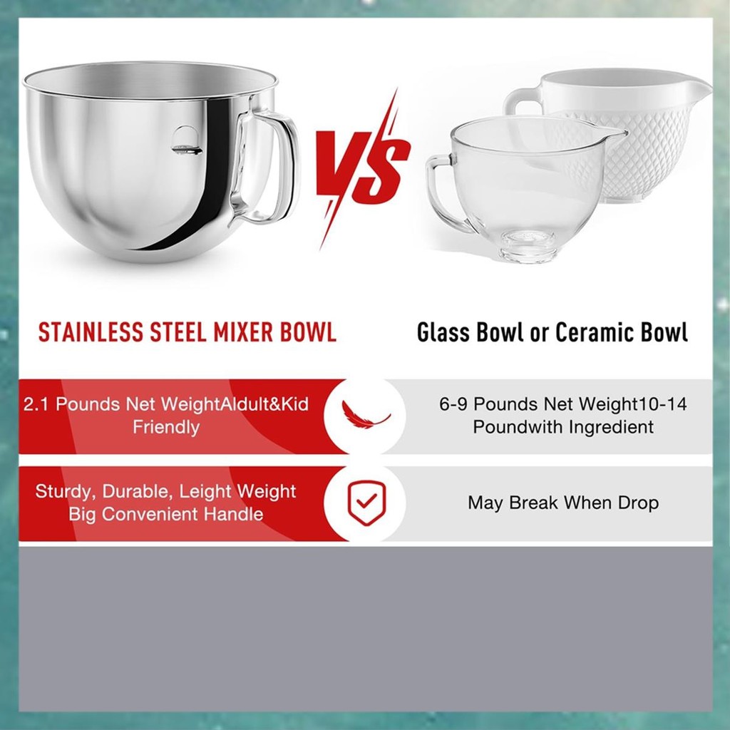 [Q H B W] 6QT Stainless Steel Mixer Bowl For Stand Mixers, Kitchen Aid Mixing Bowl For 6QT Tilt- Mixer With Handle