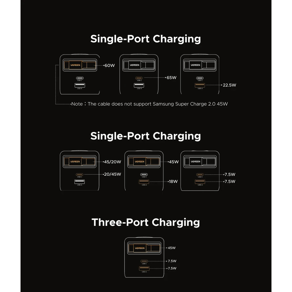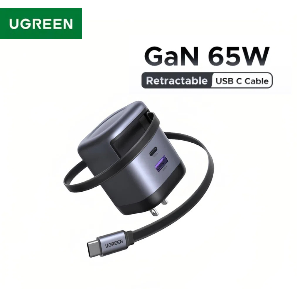 UGREEN 65W GaN Charger With Retractable USB C Cable PD Fast Charger For iPhone Xiaomi Laptop Tablet
