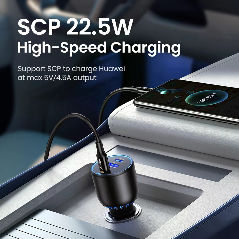 UGREEN Car Charger PD3.0 130W Fast Charging USB Type C Car Charger For Xiaomi iPhone Samsung Tabet