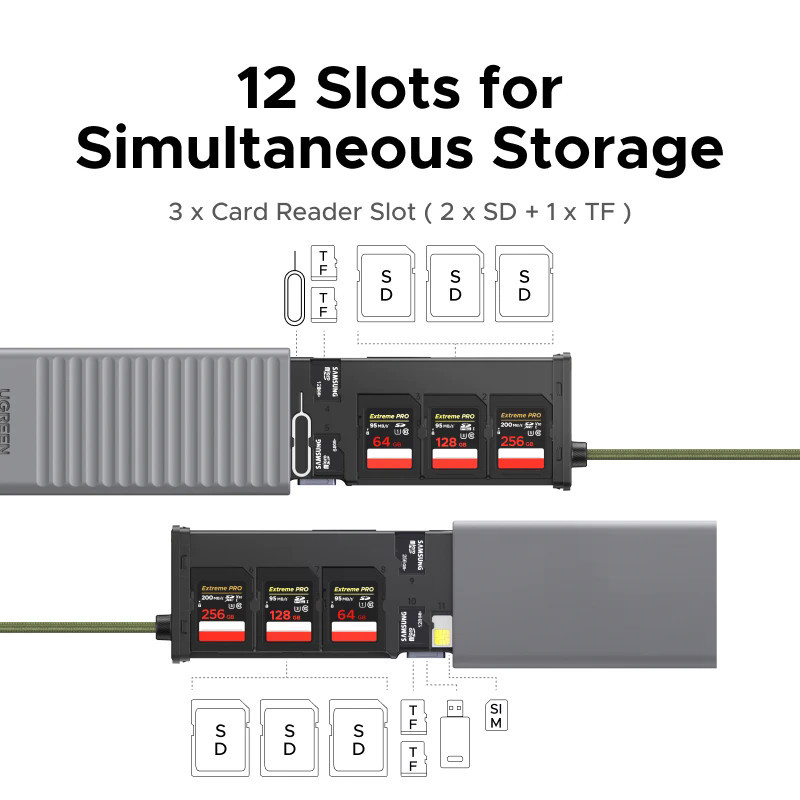 UGREEN USB-C Card Reader Storage Case High-Speed Memory Card Case OTG Adapter with 12 Slots Holder for Cameras SD TF Card