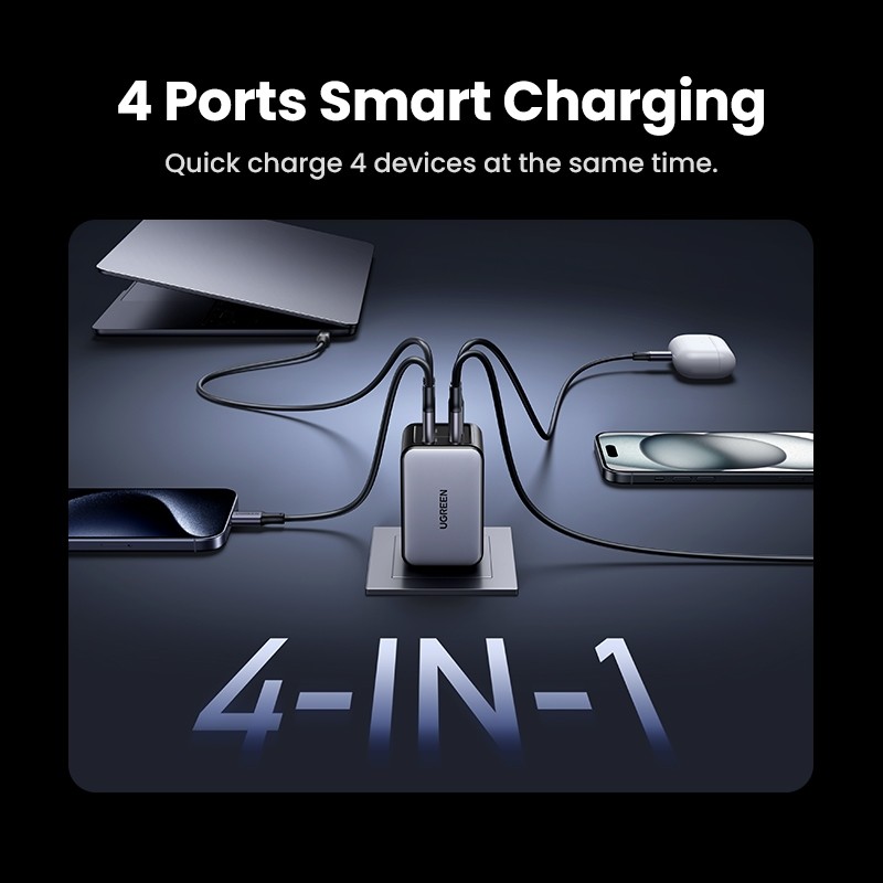 UGREEN 65W GaN Charger 4 Ports 3C1A USB C Fast Charger QC3.0 PD 3.0 For iPhone Macbook Laptops Tablet Android Phone