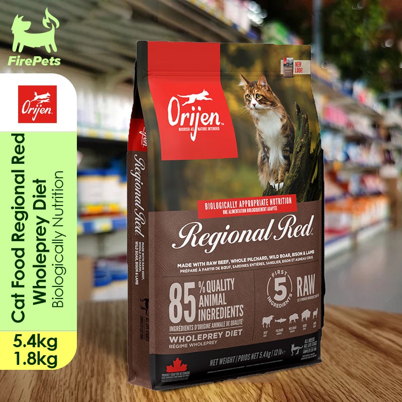 Orijen Cat Dry Food 5.4kg, 1.8kg Regional Red 85%2 quality meat and fish ingredients