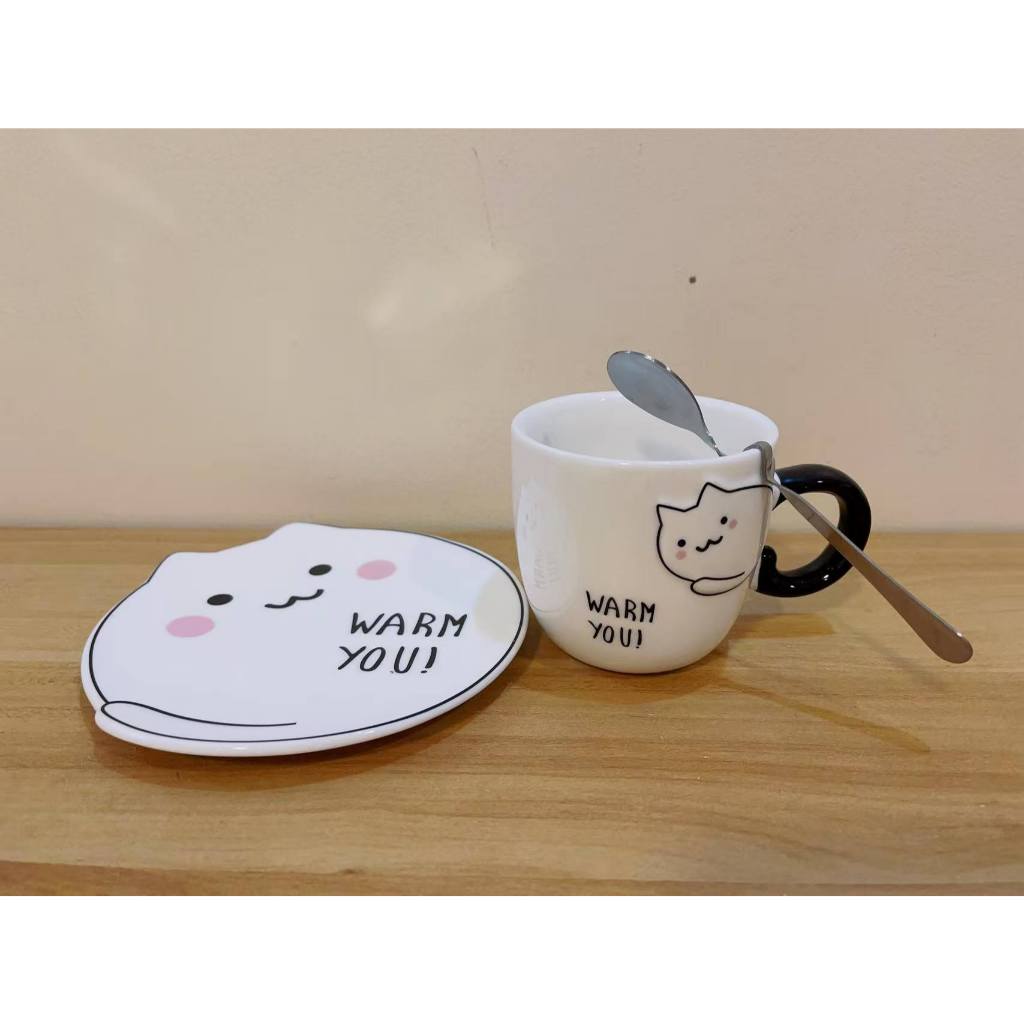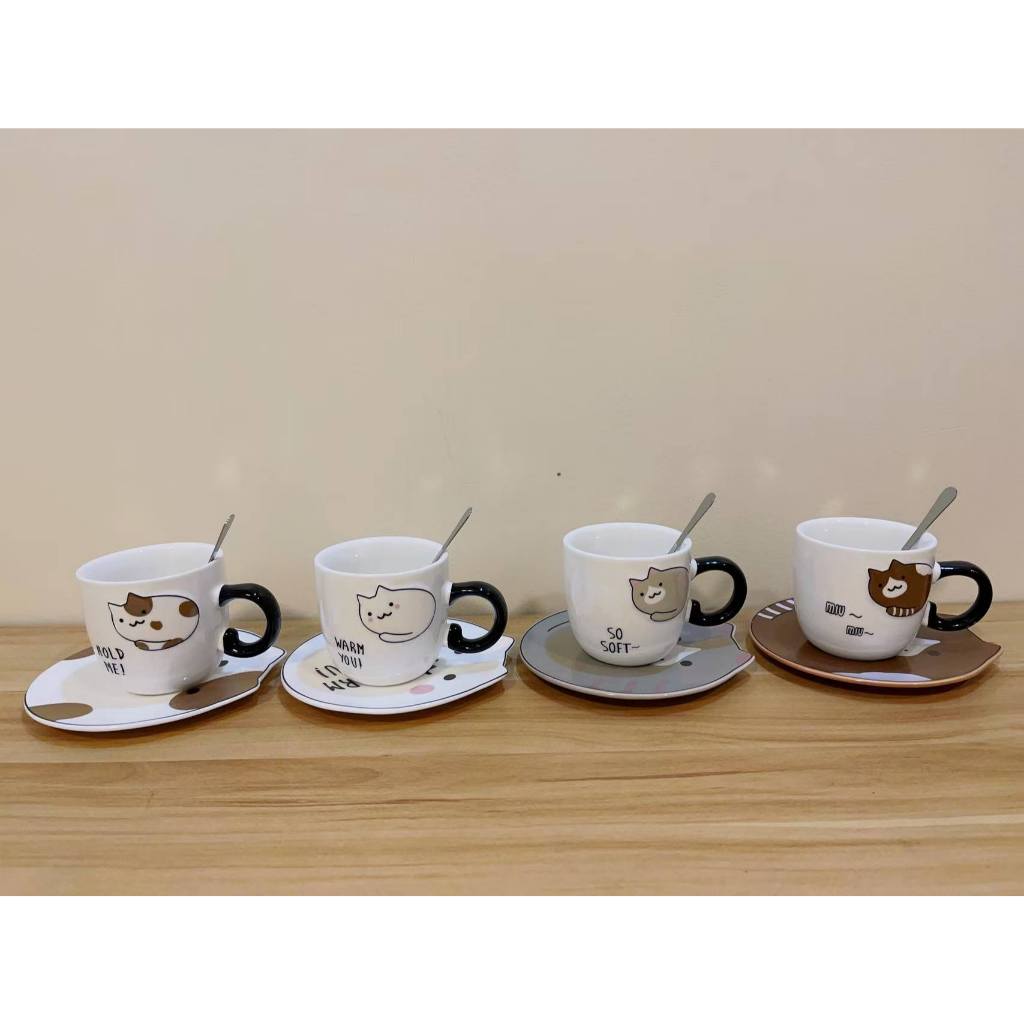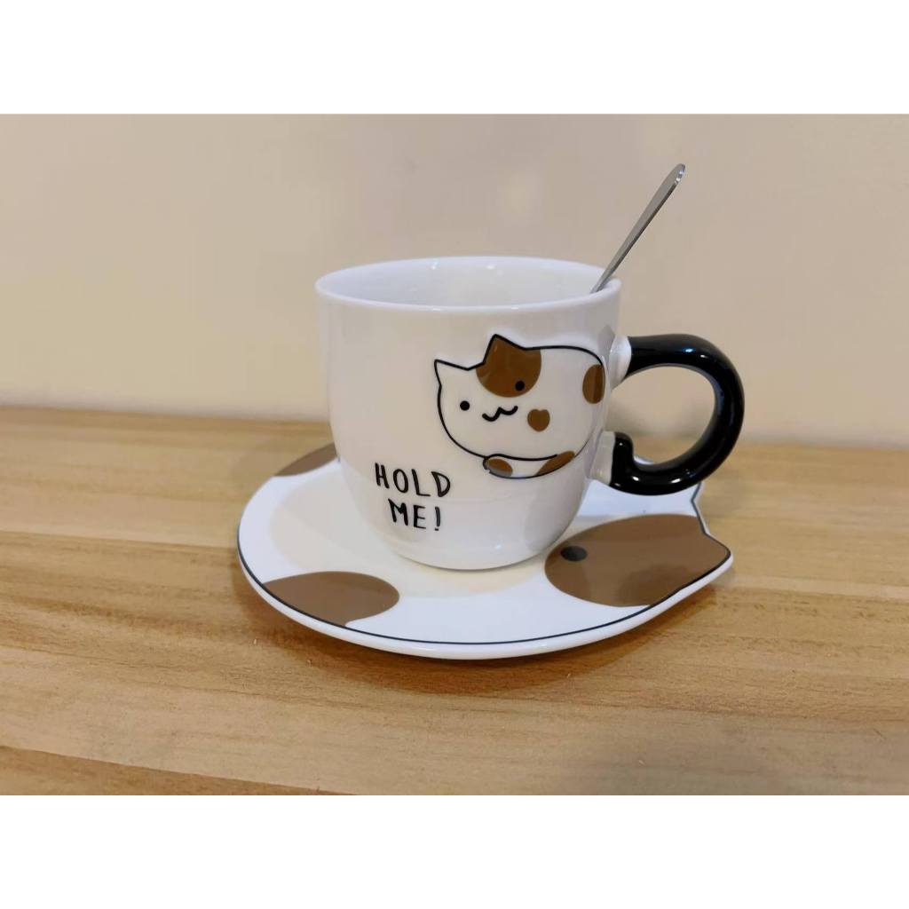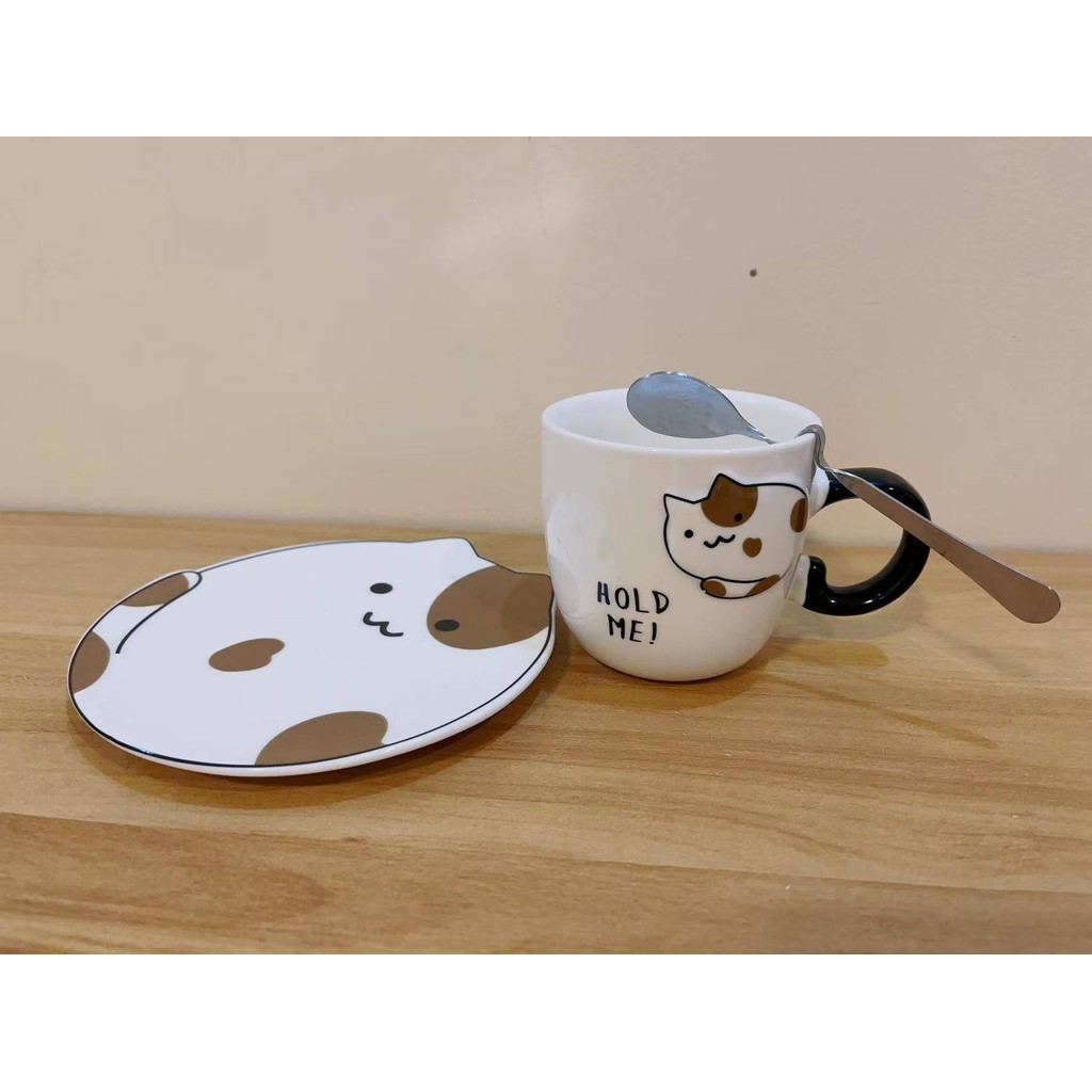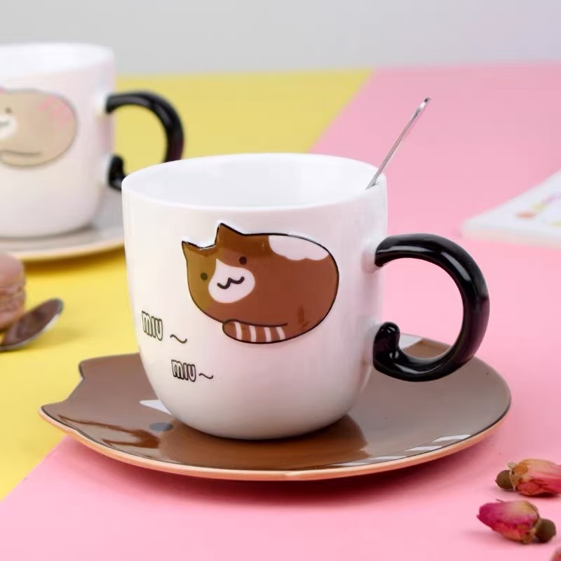 VJ/New Cartoon Design Cute Cat Ceramic Cup with Disc and Spoon Set Coffee Cup 01