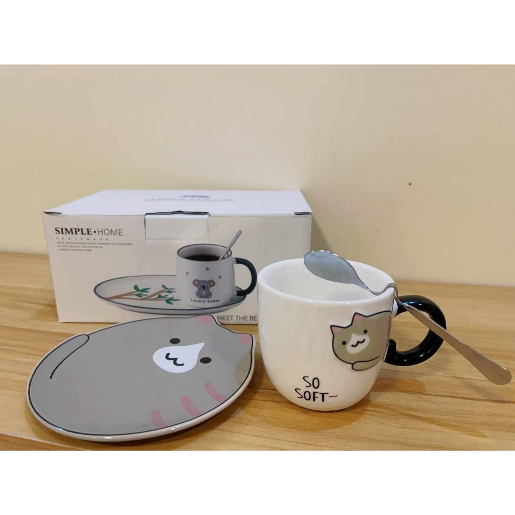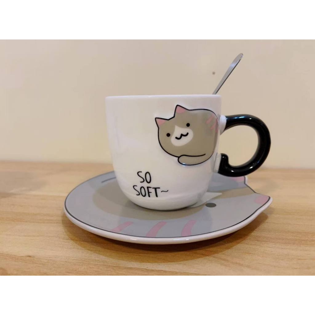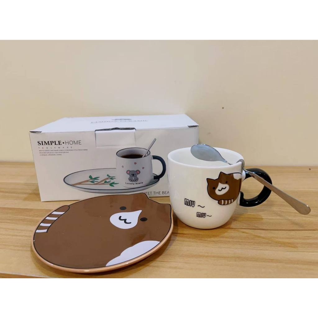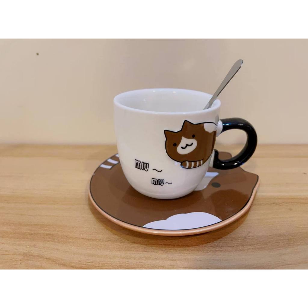 VJ/New Cartoon Design Cute Cat Ceramic Cup with Disc and Spoon Set Coffee Cup 01
