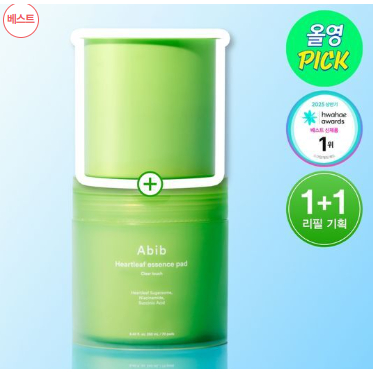 Abib Heartleaf Essence Pad | Calming & Hydrating Toner Pads | 1+1 Refill Set